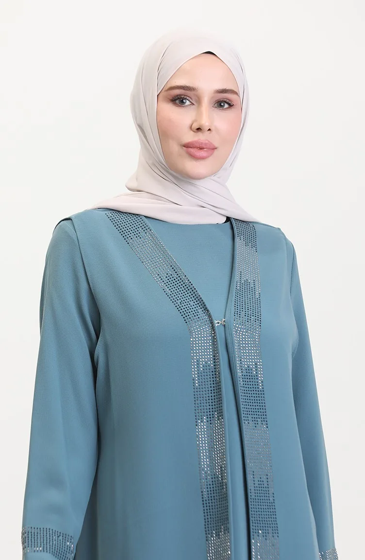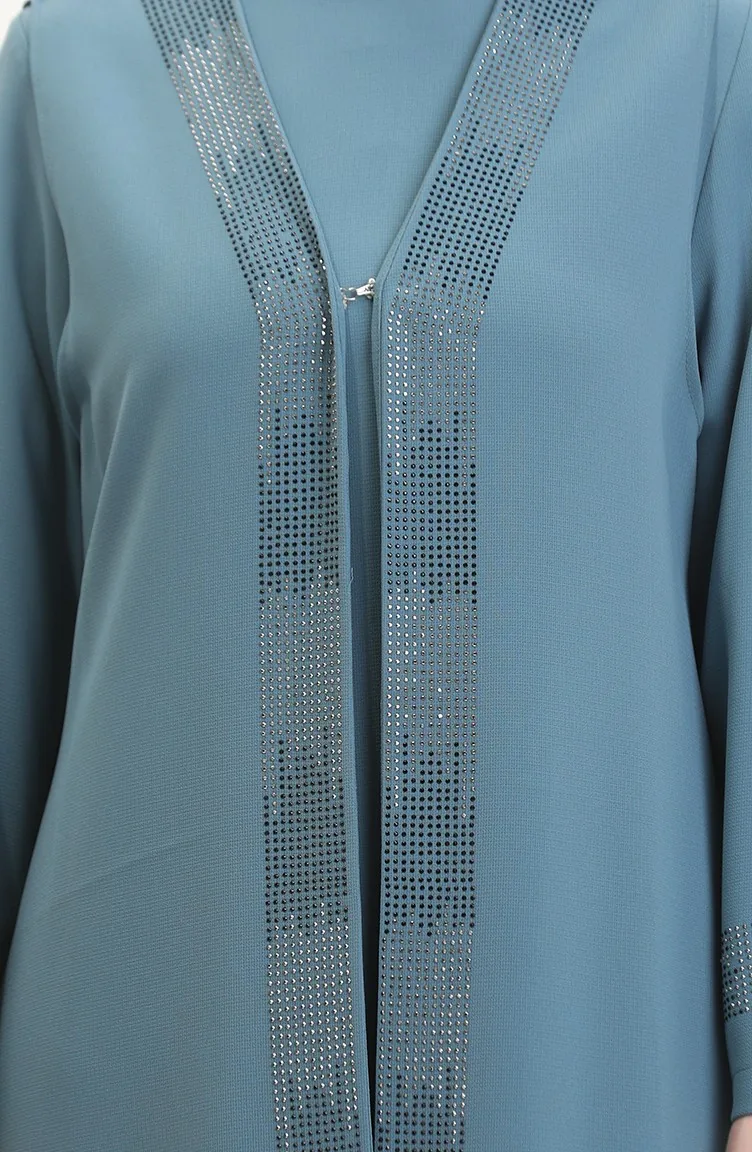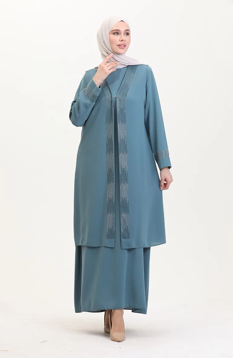 Büyük Beden Elbise Yelek İkili Takım 6140-02 Su Yeşili