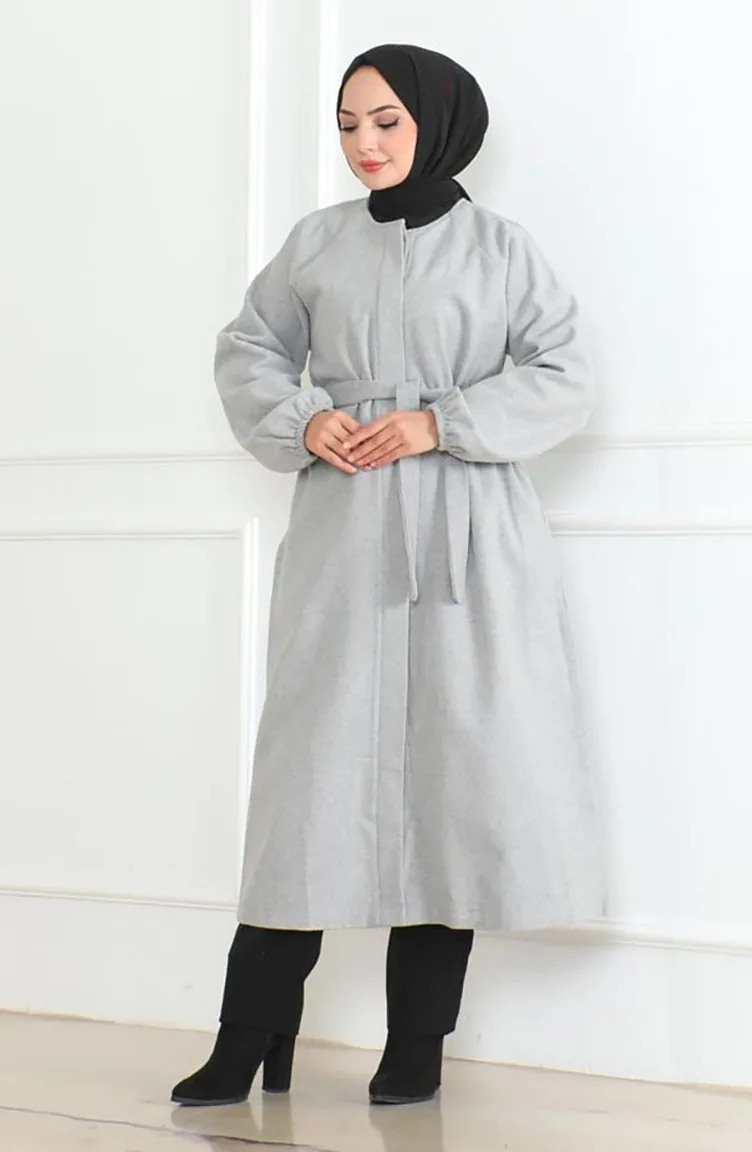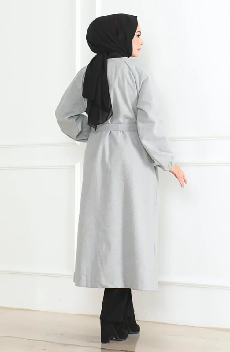 معطف كشمير بحزام مخفي 0504-01 رمادي 0504-01