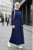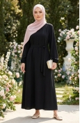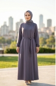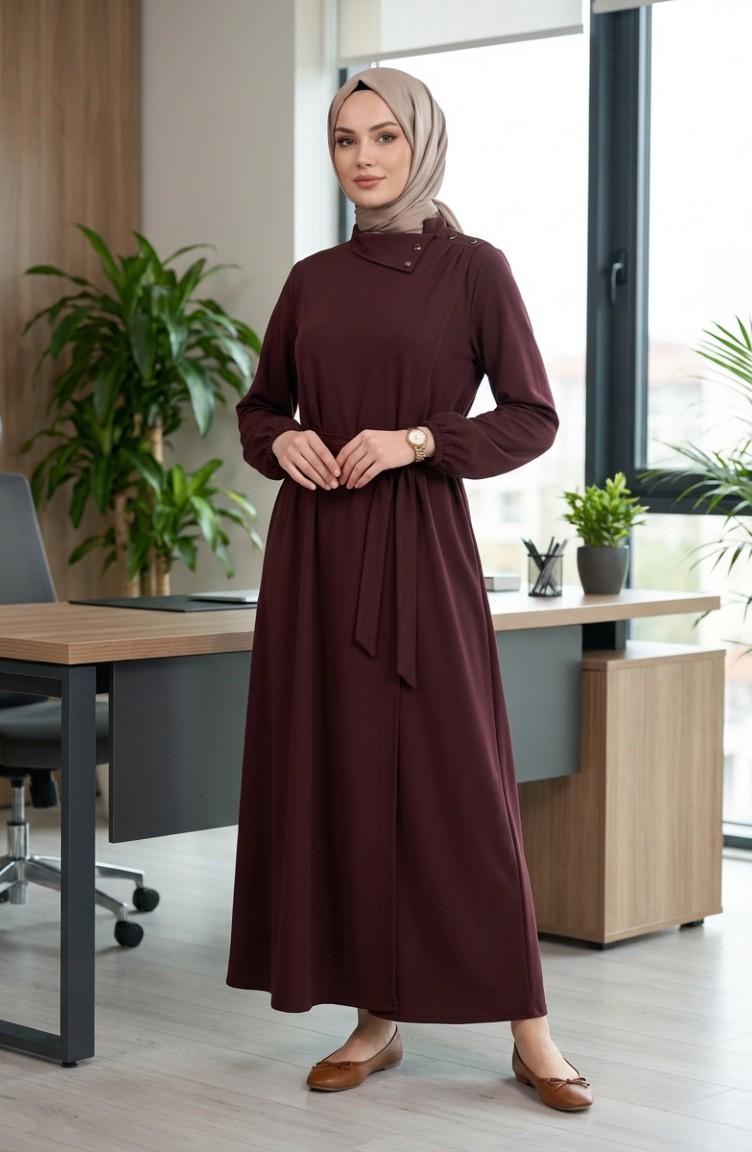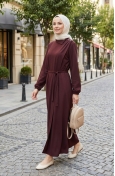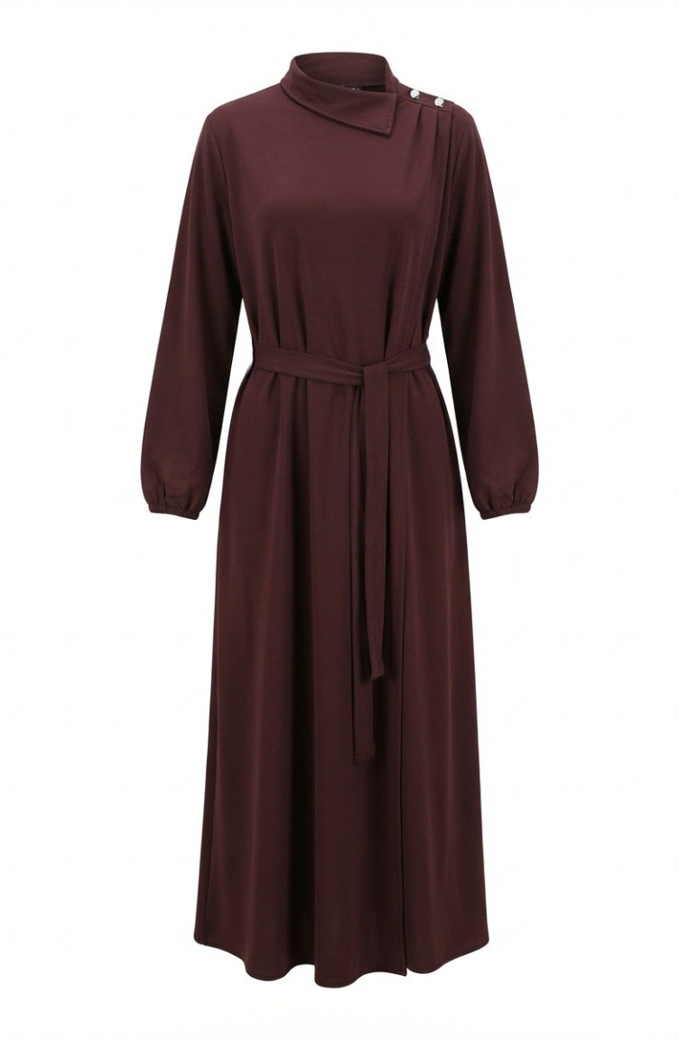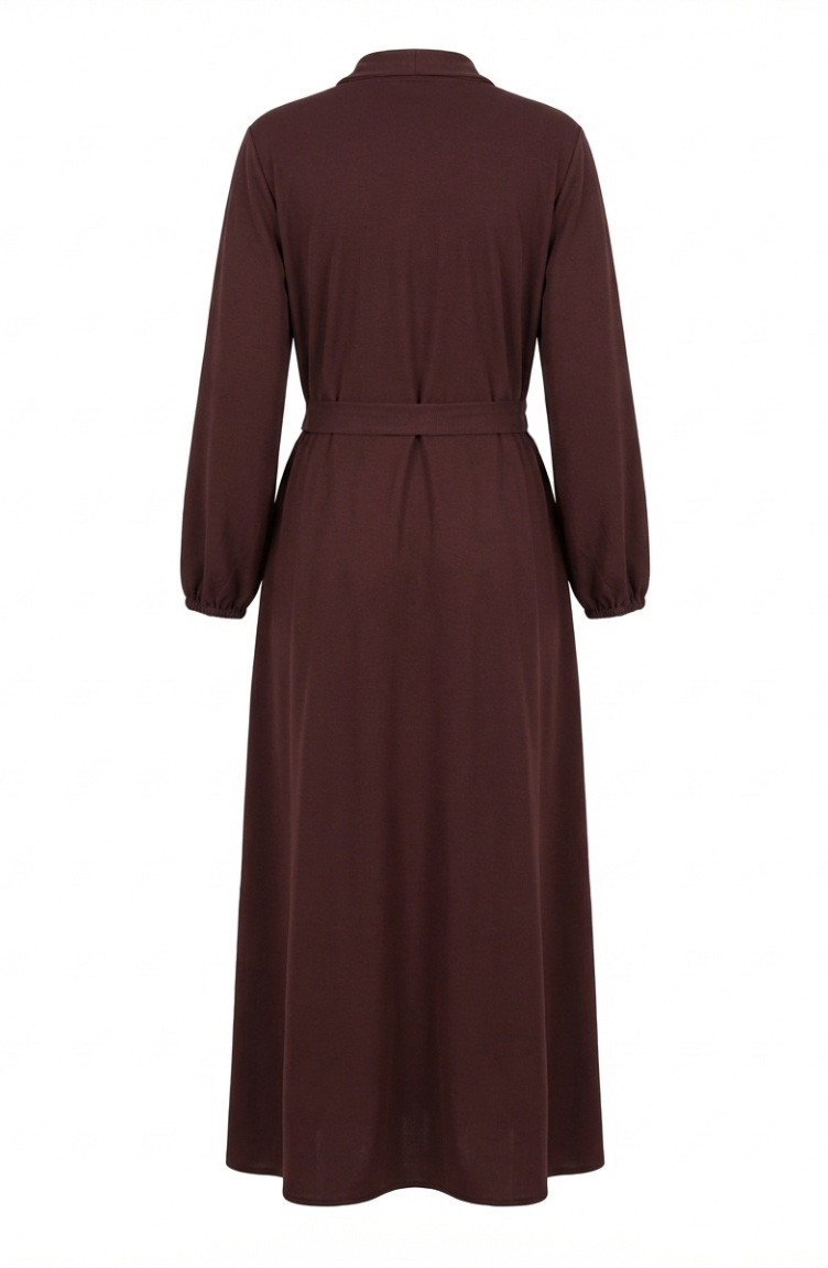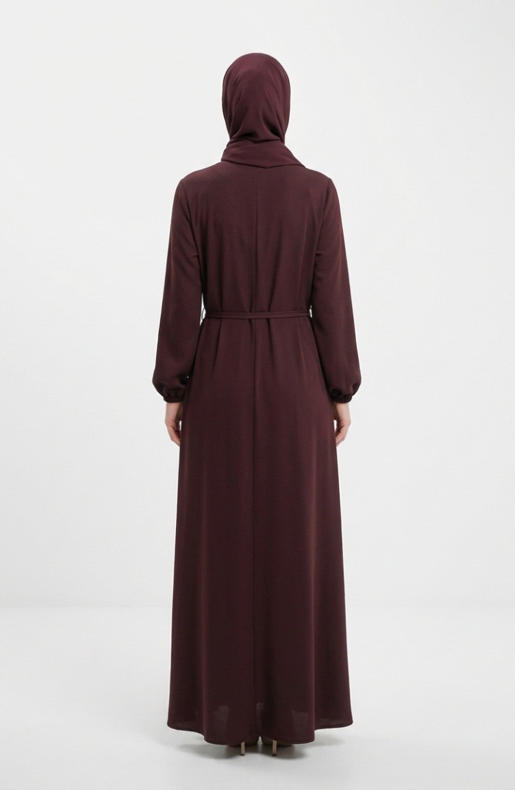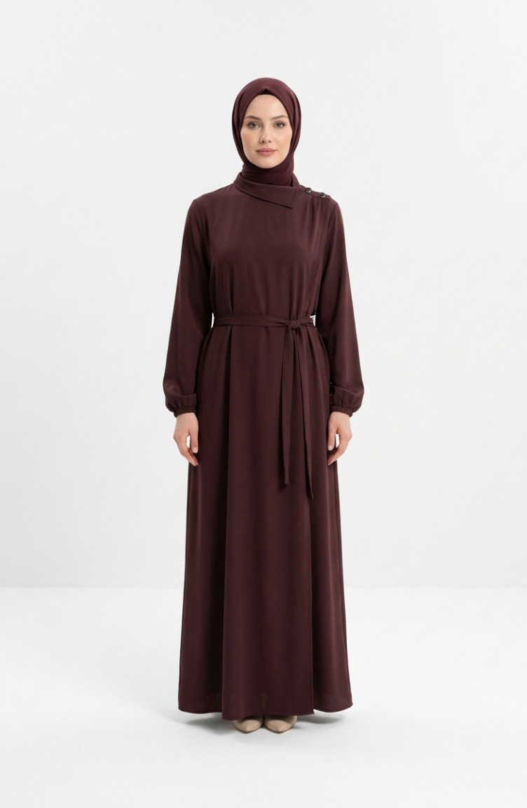 عباية بنية اللون، مزينة بأزرار وأكمام مطاطية وحزام، رقم الموديل 2212-03 2212-03