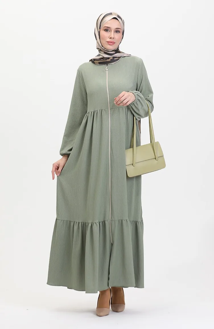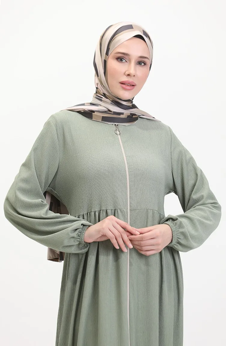 عباءة بتصميم سحاب 1018-07 أخضر مينت 1018-07