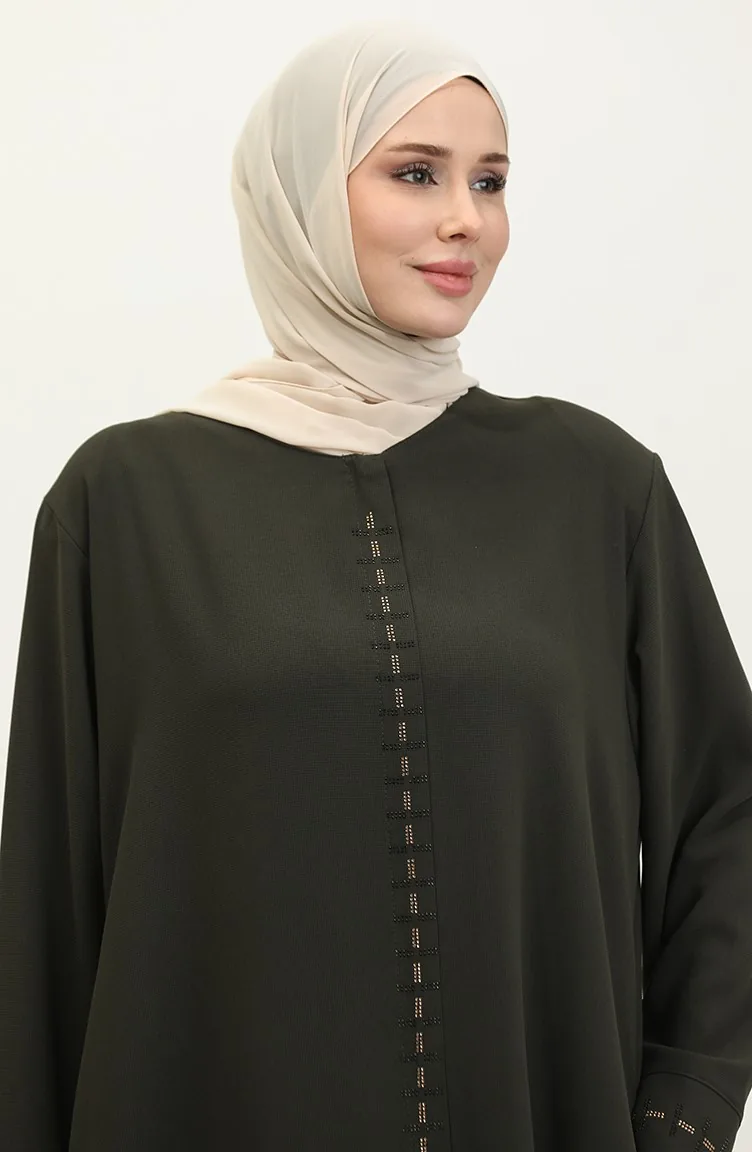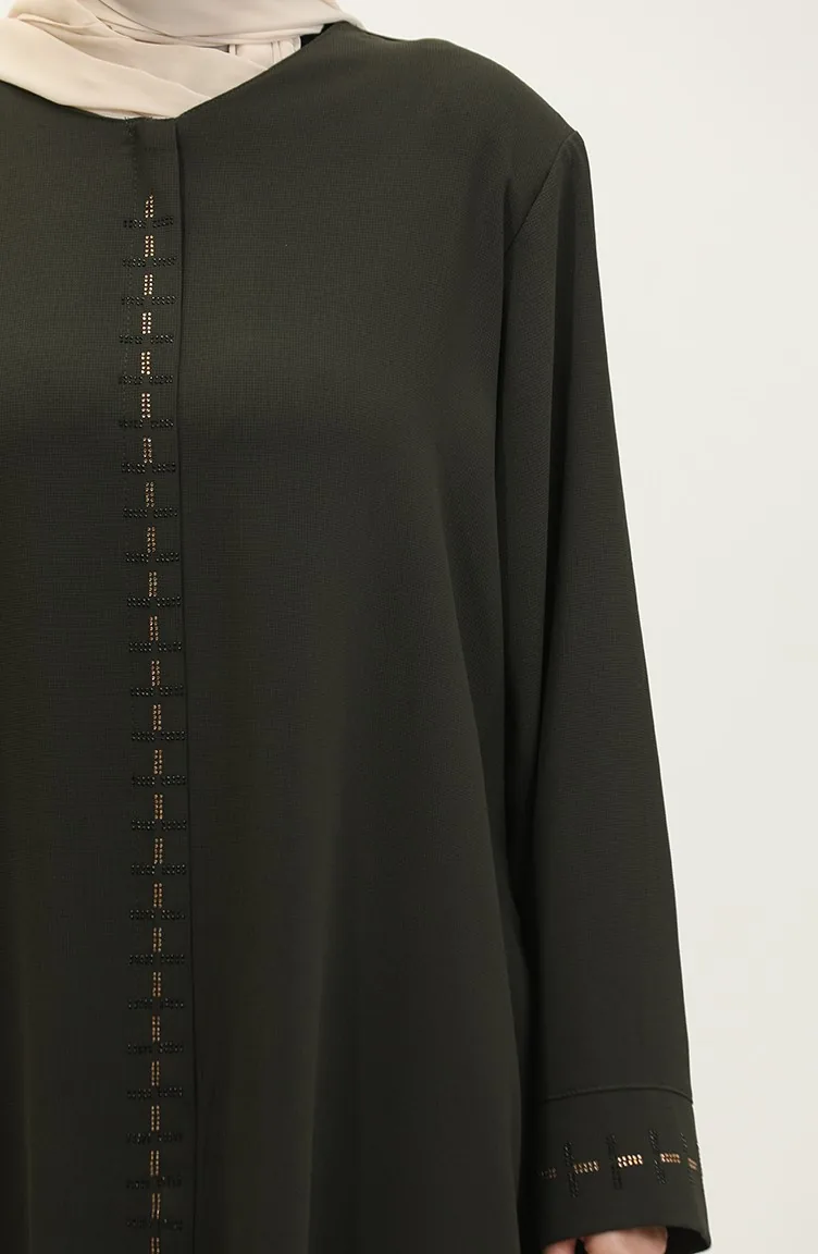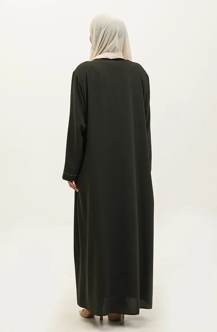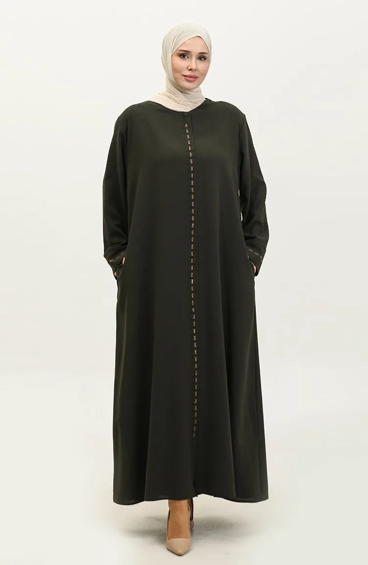 عباية بسحاب مخفي مقاس كبير 5068-03 أخضر عسكري 5068-03