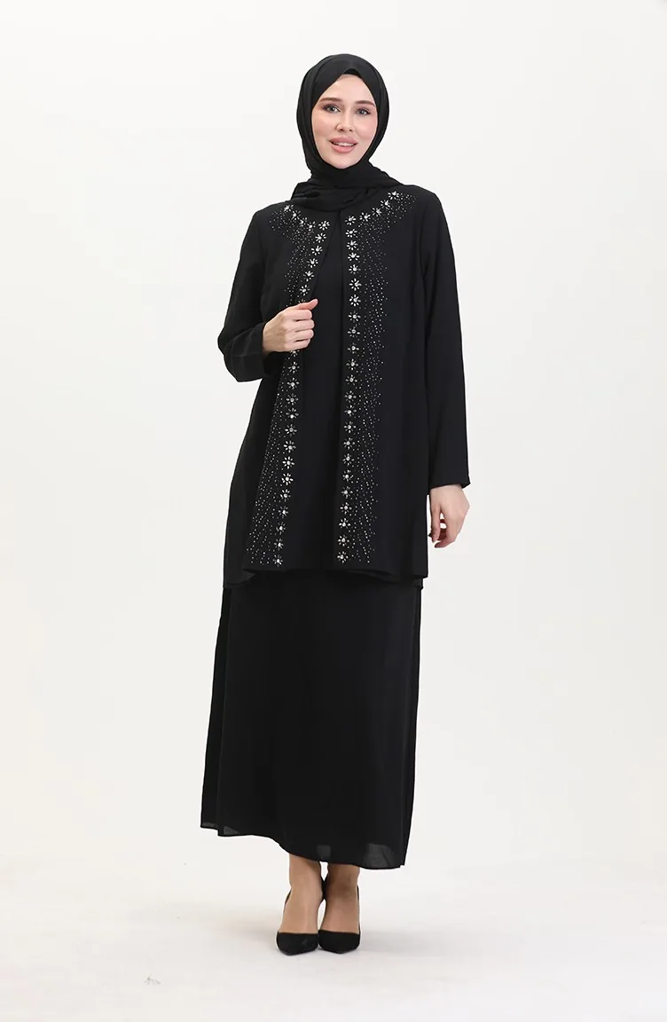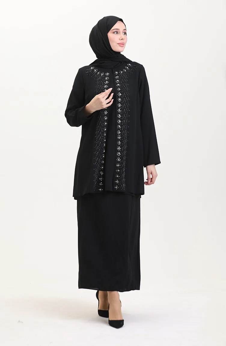 طقم مزدوج مرصع بالأحجار 6200-02 لون أسود 6200-02