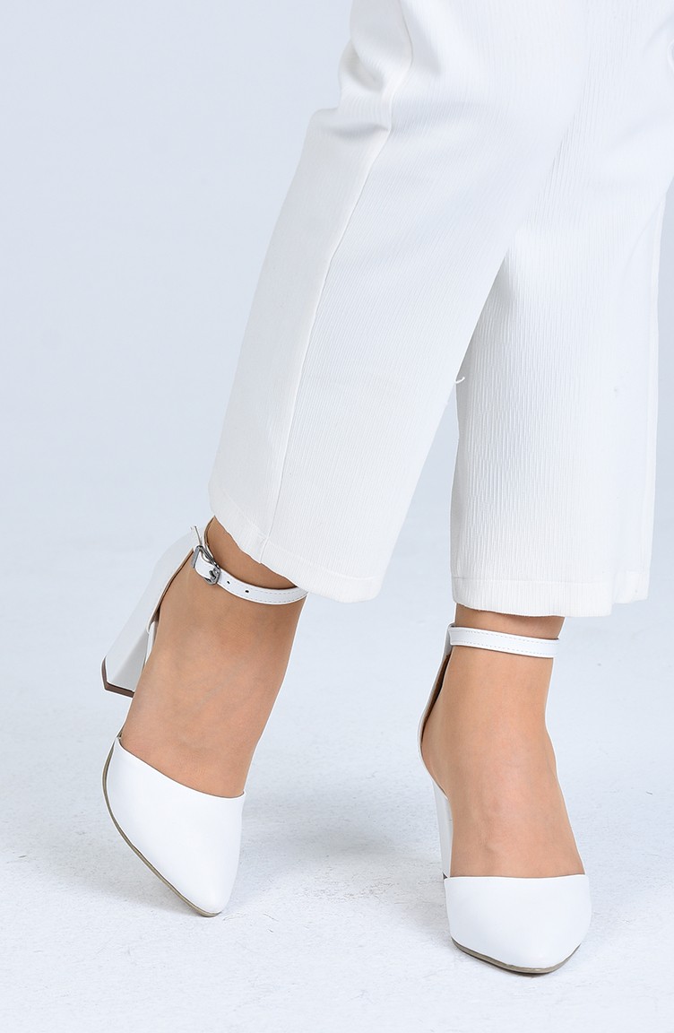 حذاء كعب عالي نسائي لون ابيض جلدي 1101-03