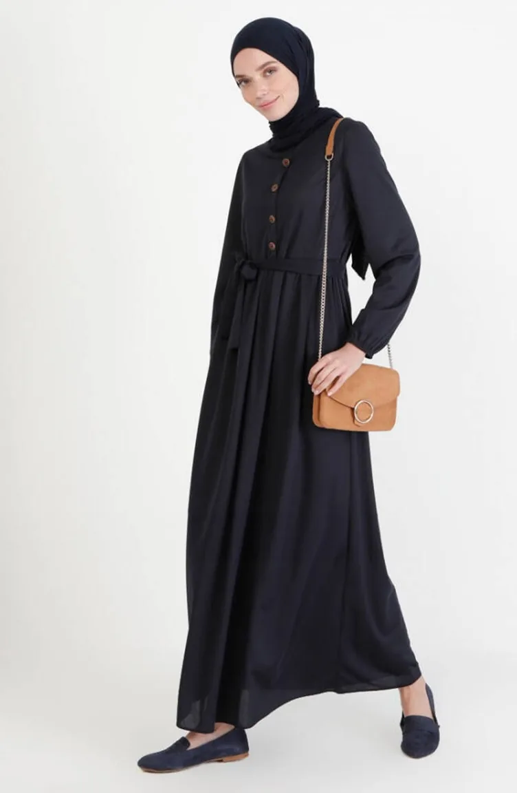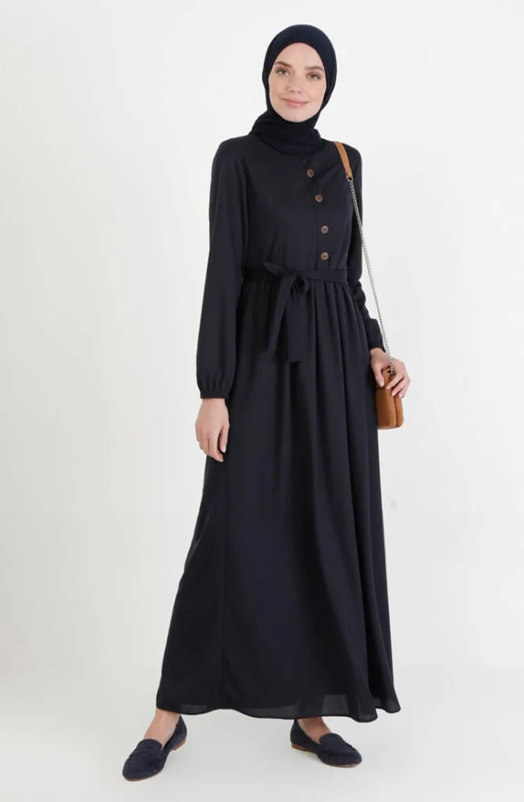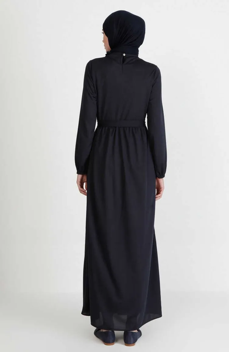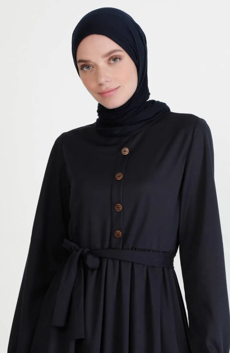فستان بتصميم حزام للخصر 7979-11 لون كحلي 7979-11