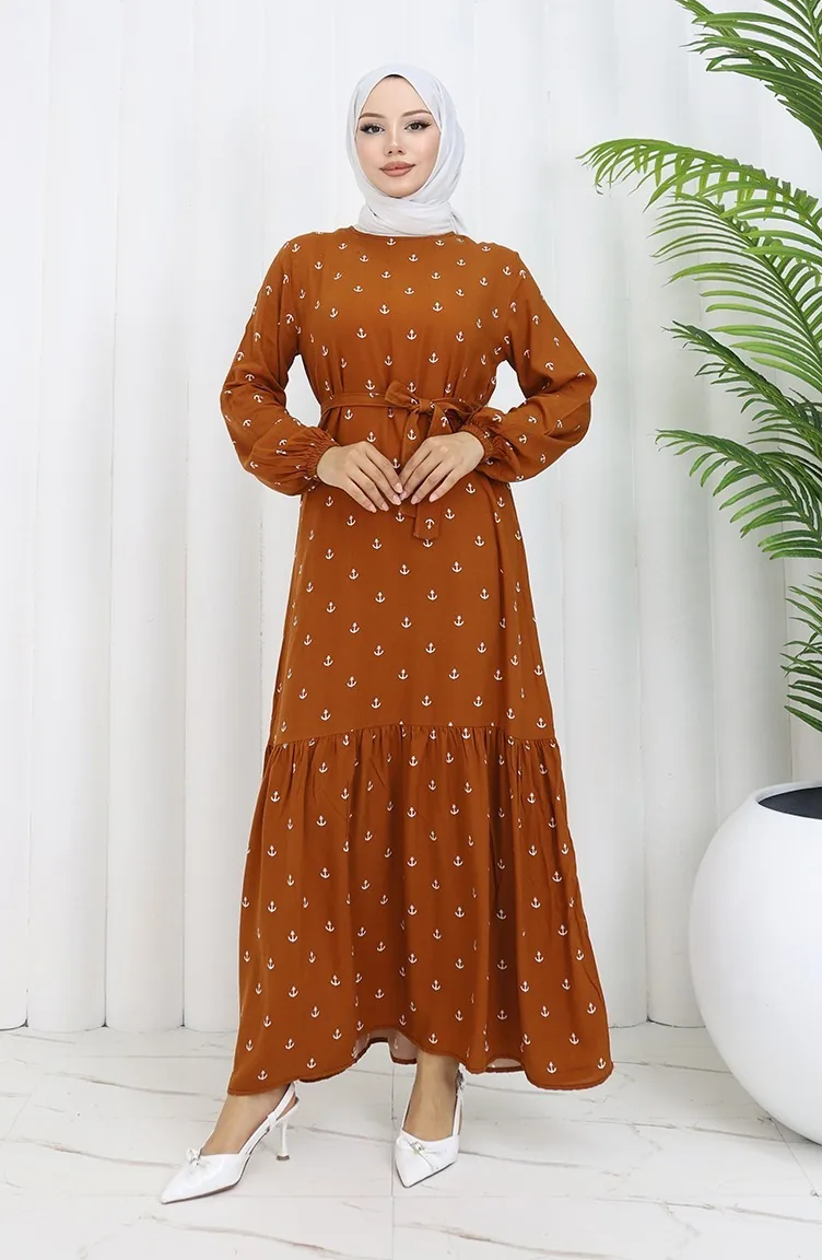 بيرا كابا فستان فيسكوز قطن بتصميم مُطبع 0344-03 طابا 0344-03