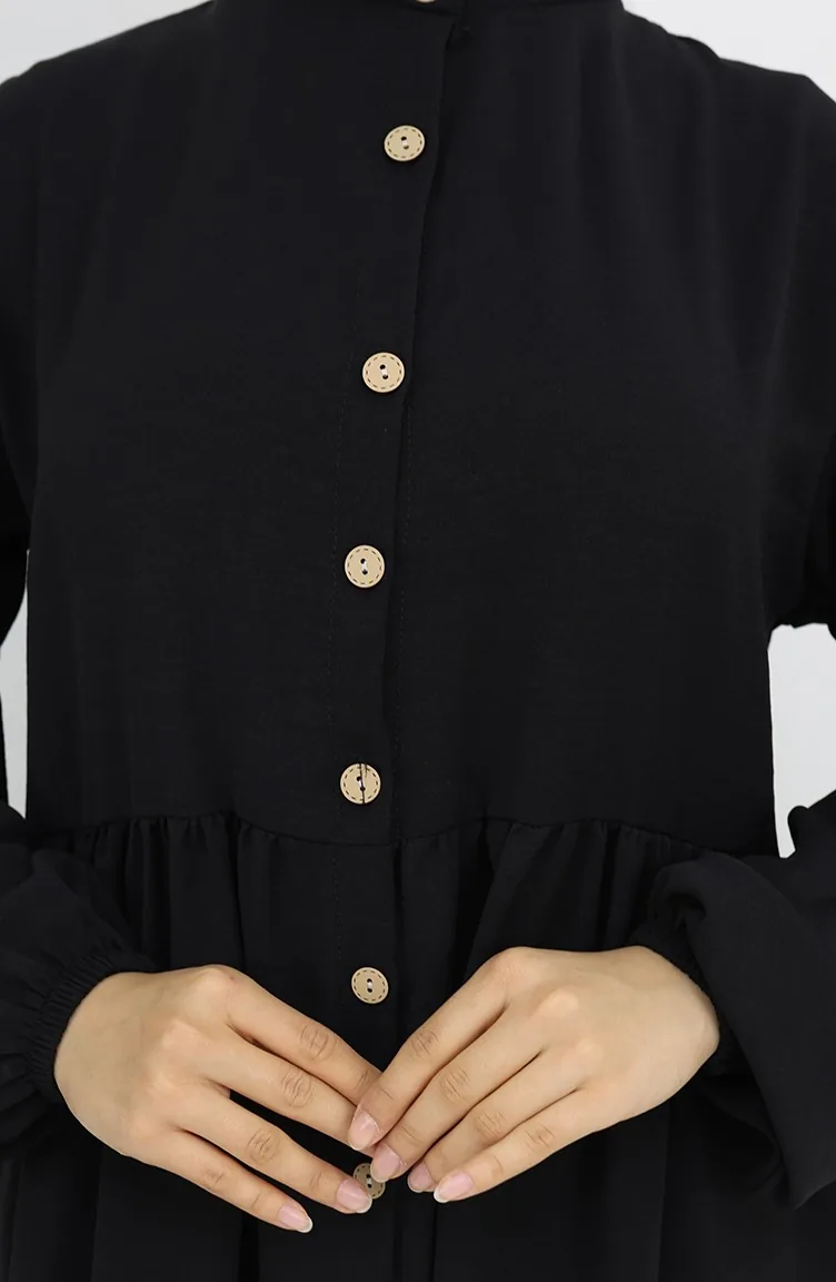استخدم فيه اللون الأسود. نسيج القطن لديه نسيج ماص. ذو مظهر سادة. المنتج ذو الاستخدام بدون تبطين. استخدم الكم البيلاستيك. استعمل فيها الياقة الدائرية. مناسب لجميع المواسم. هناك مقاسات كبيرة.