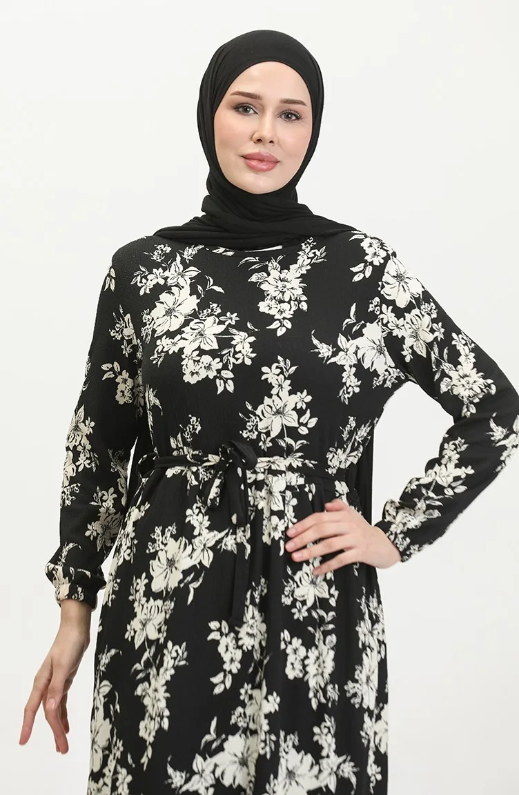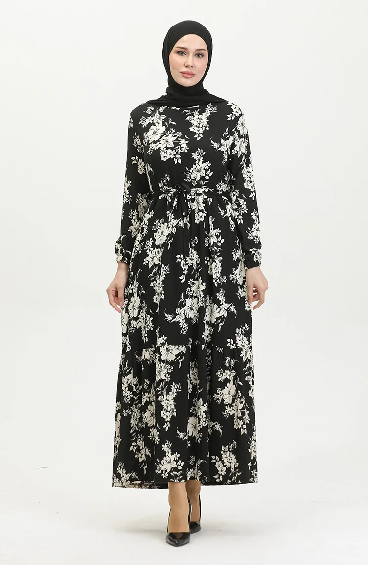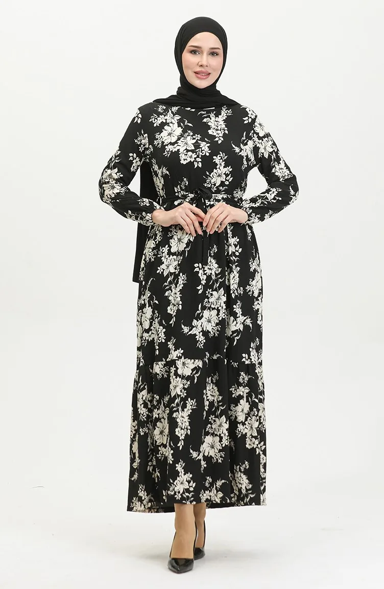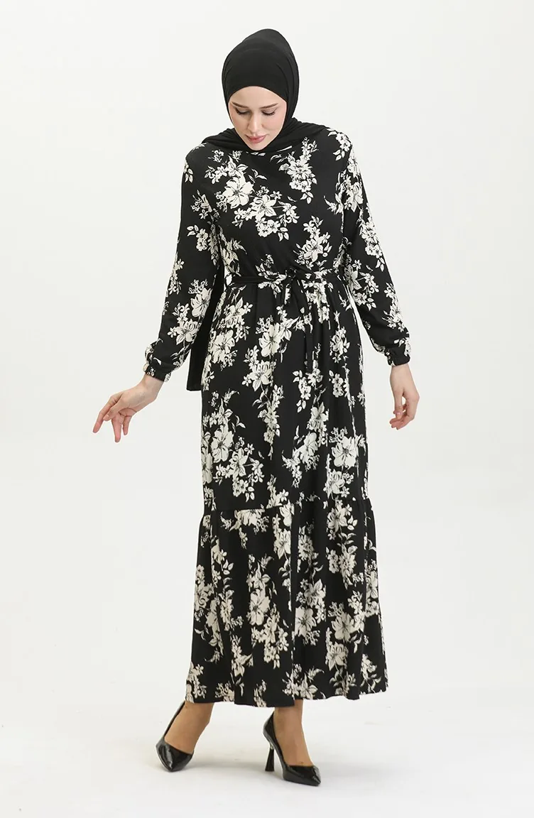 فستان منقوش للمحجبات 5010-01 أسود 5010-01