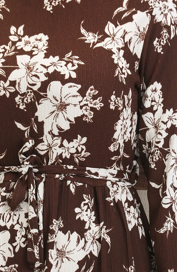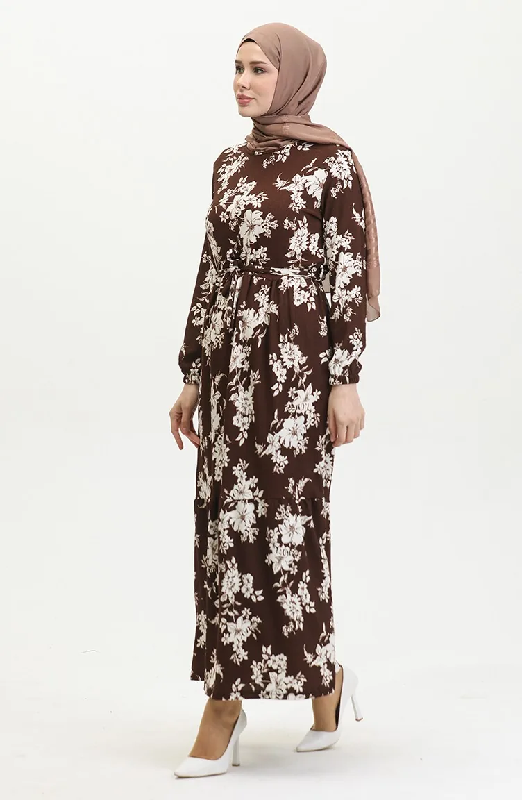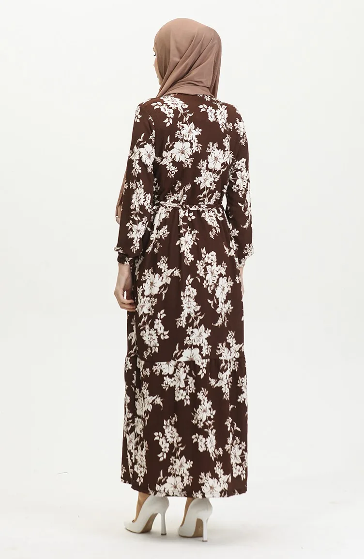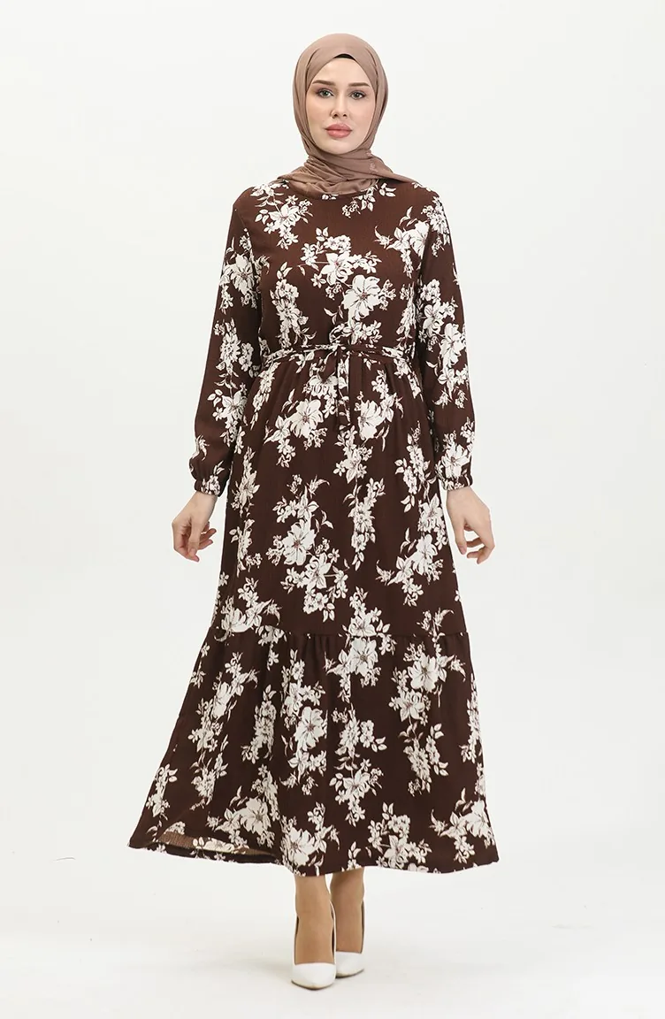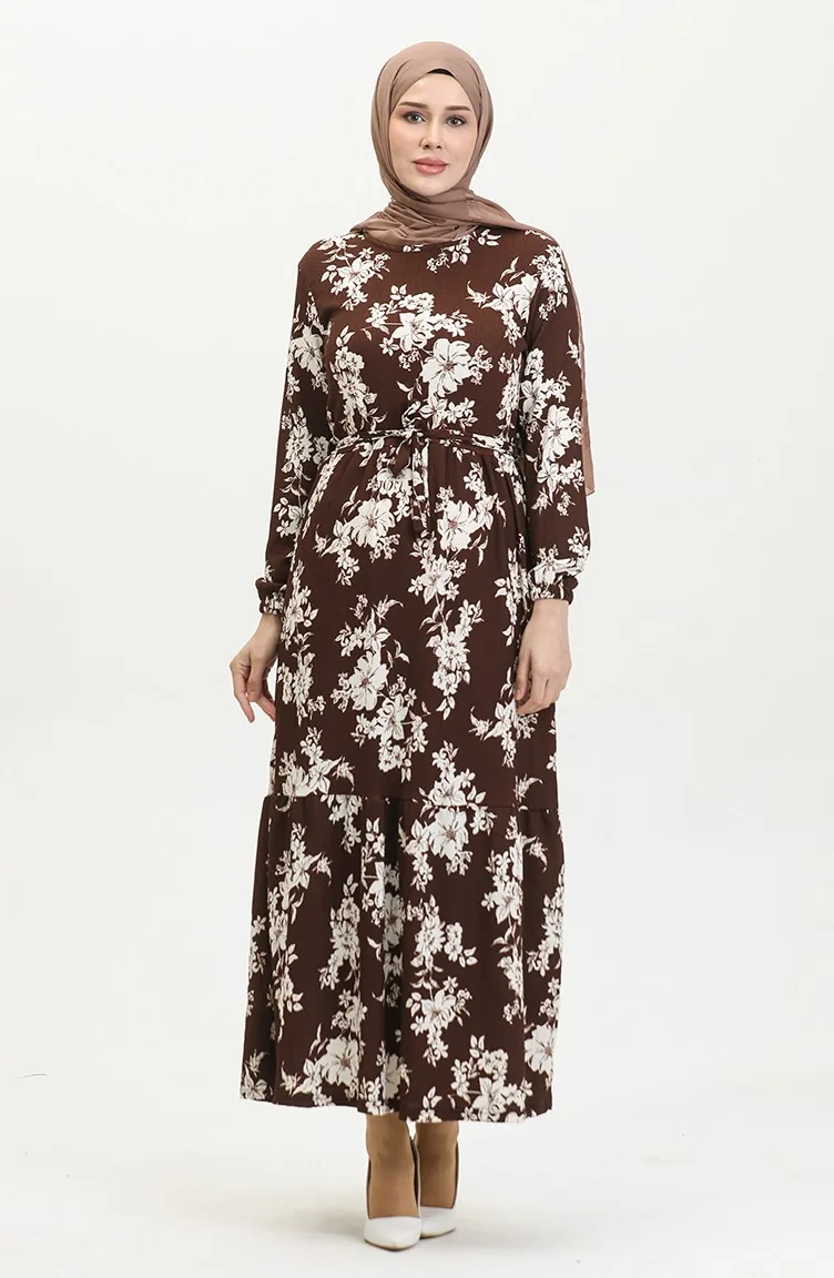 فستان منقوش للمحجبات 5010-03 بني 5010-03