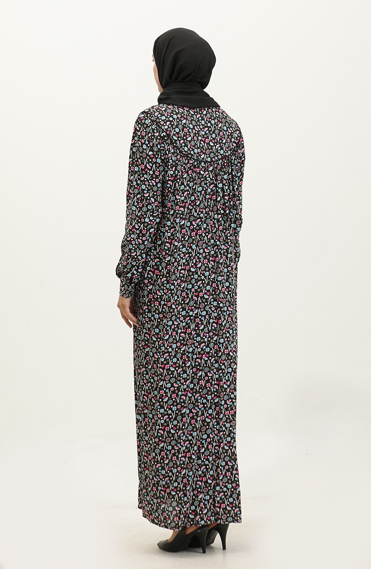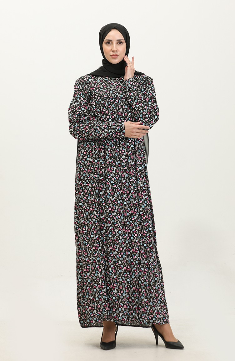 فستان من الفيسكوز بمقاسات كبيرة، منقوش، 4473-03، أسود، وردي باهت 4473-03