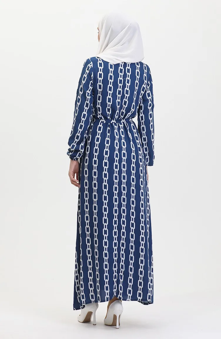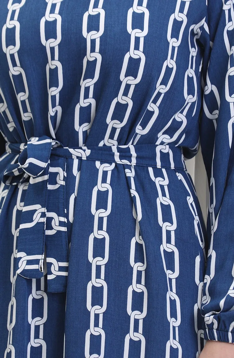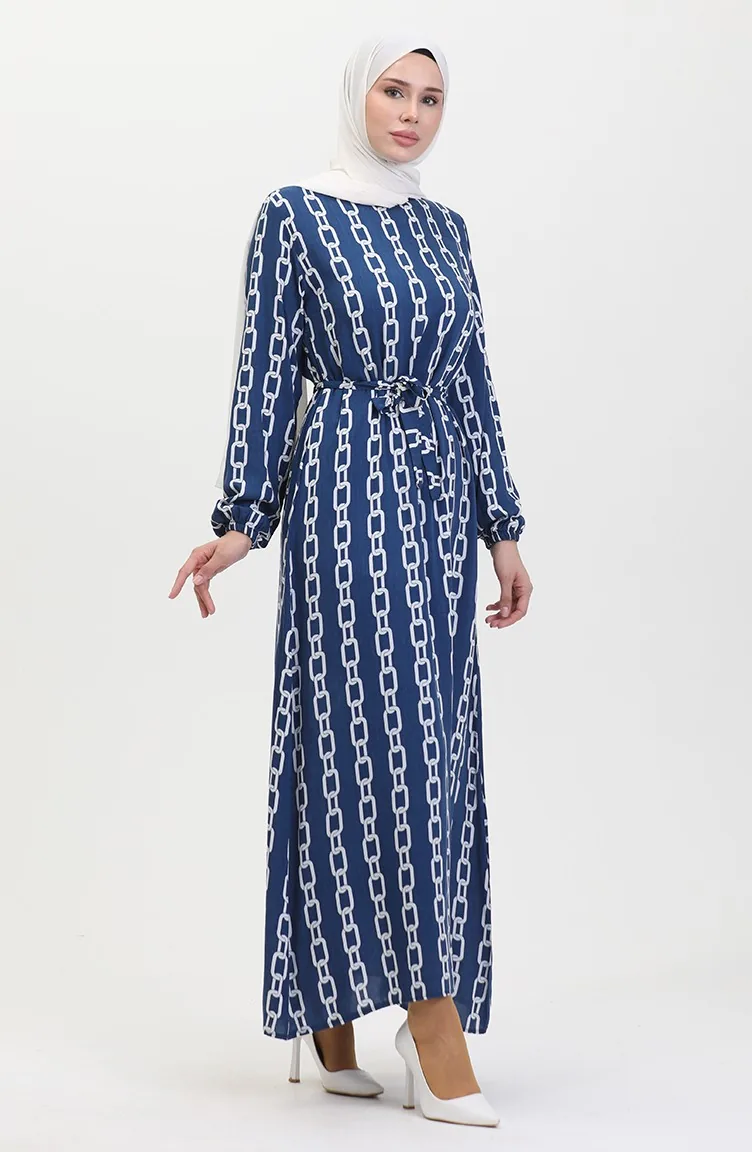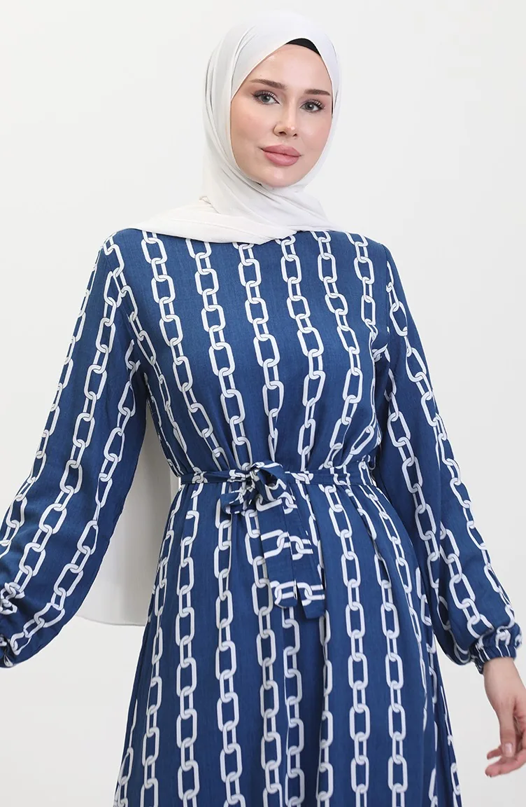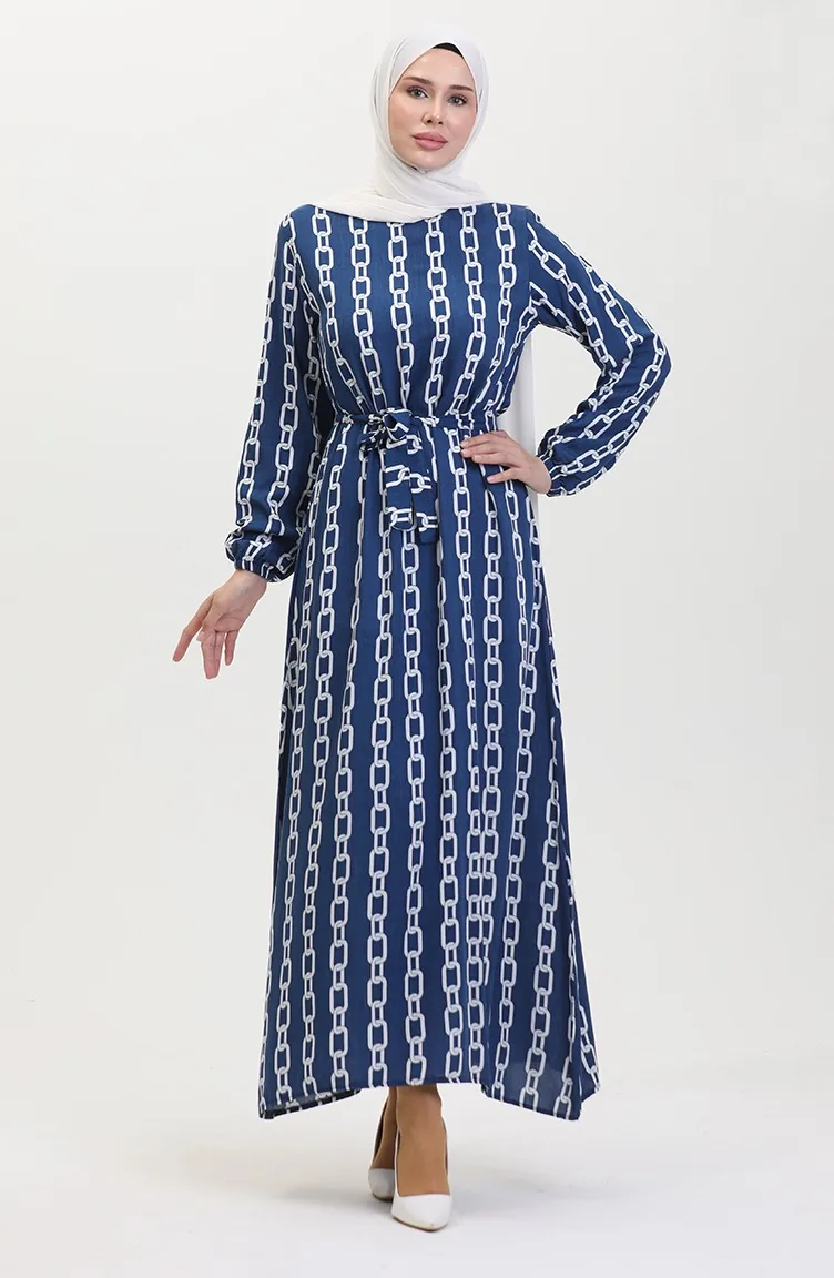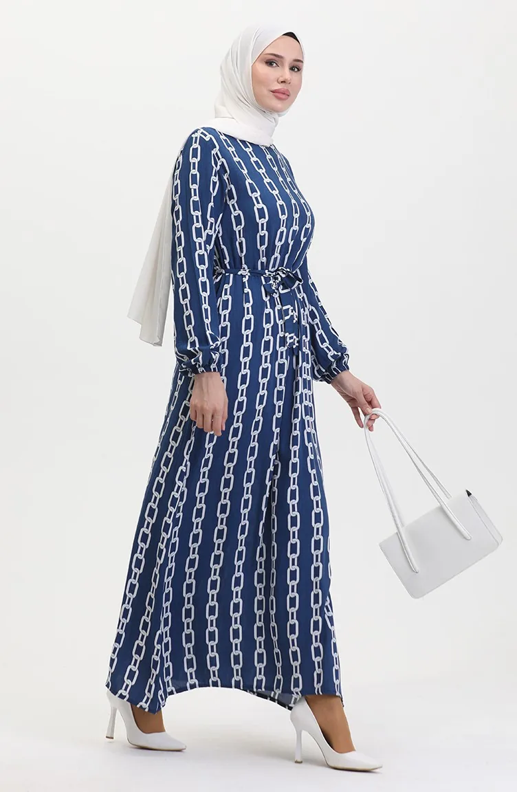 فستان منقوش للمحجبات 0453-02 أزرق 0453-02