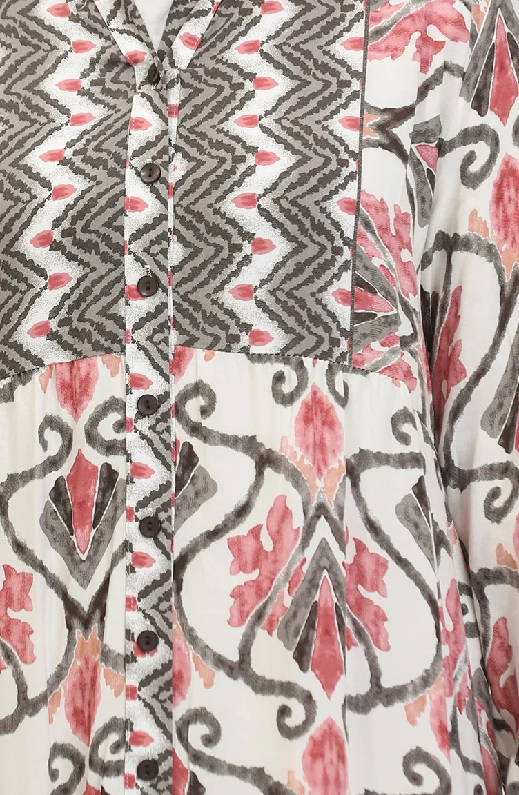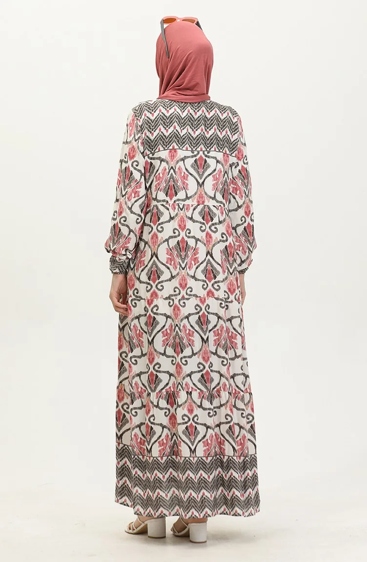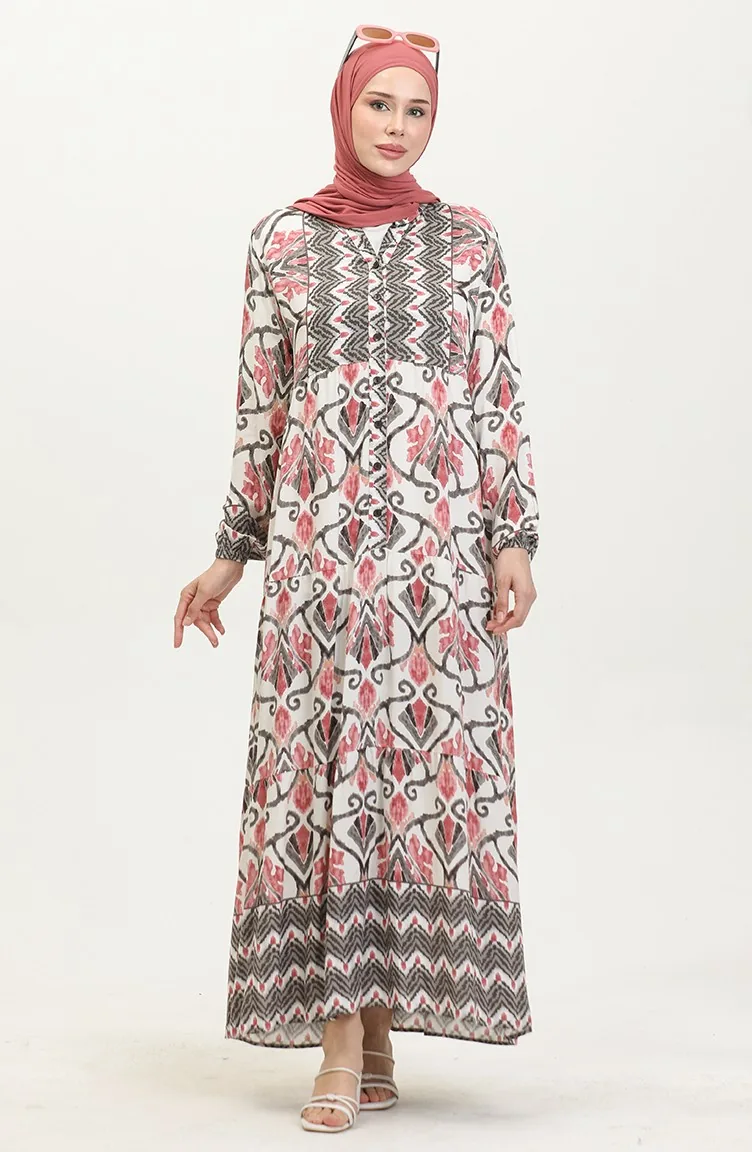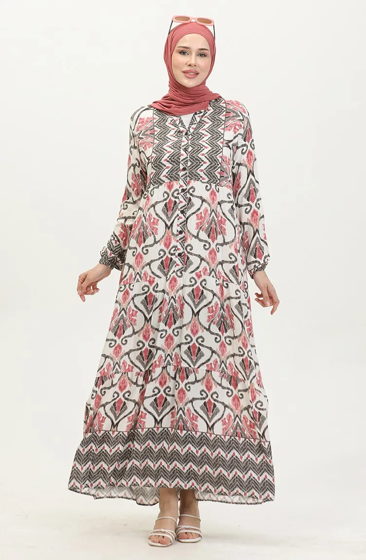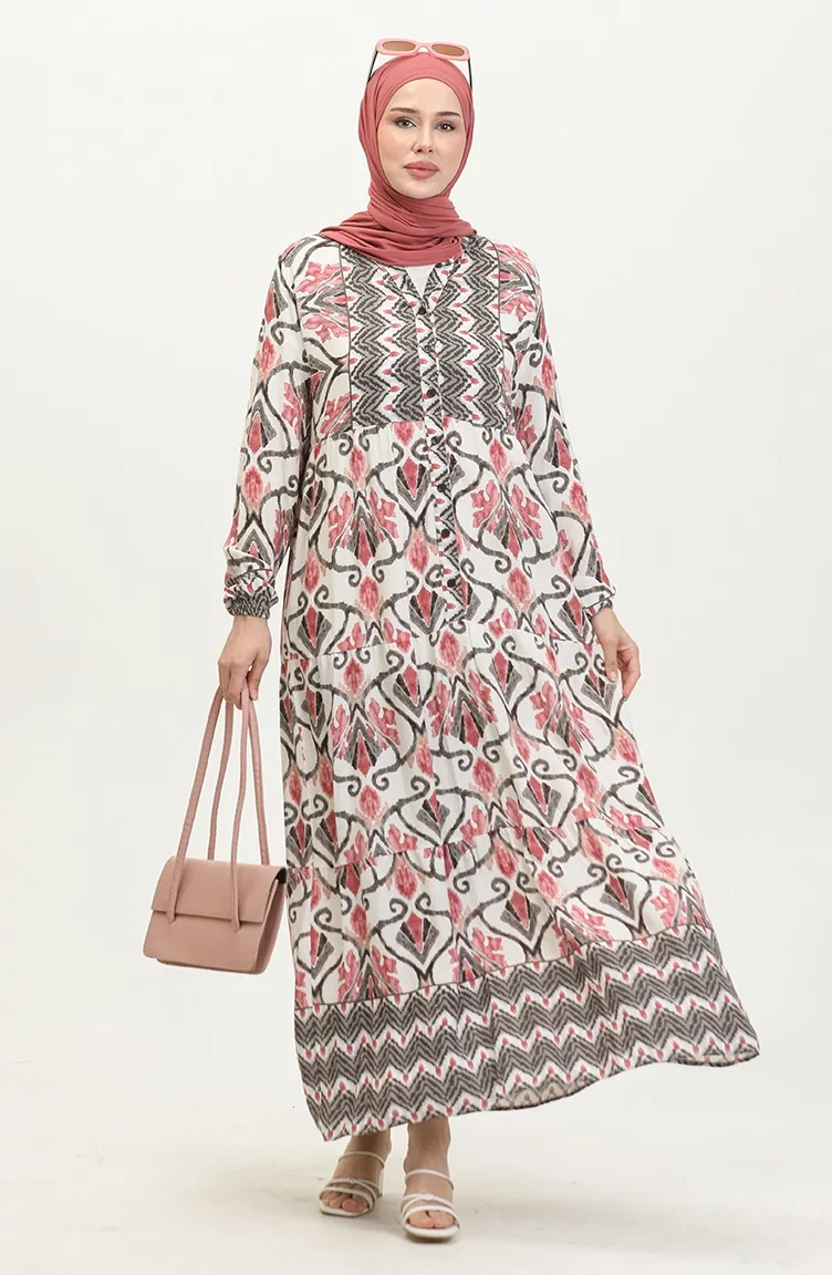 فستان منقوش للمحجبات 4096-03 بودرا 4096-03