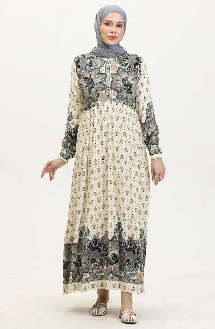 فستان بنقش أزهار 4093-01 انترسيت 4093-01