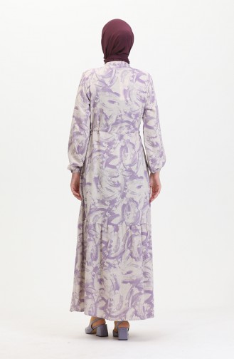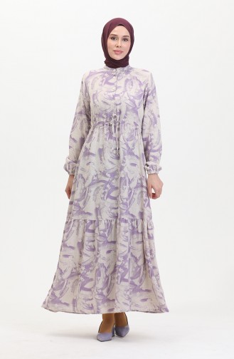 فستان كتان بتفاصيل من الدانتيل وأزرار أمامية 0520A-02 لون بيج ليلكي 0520A-02