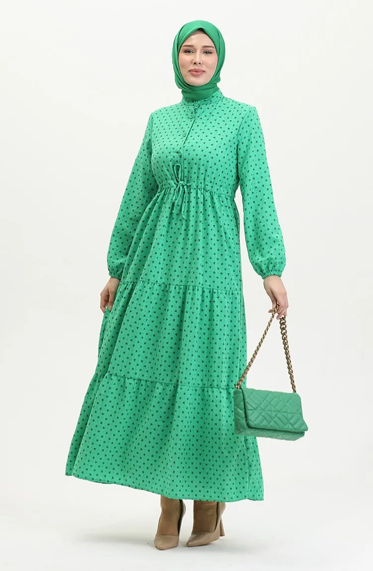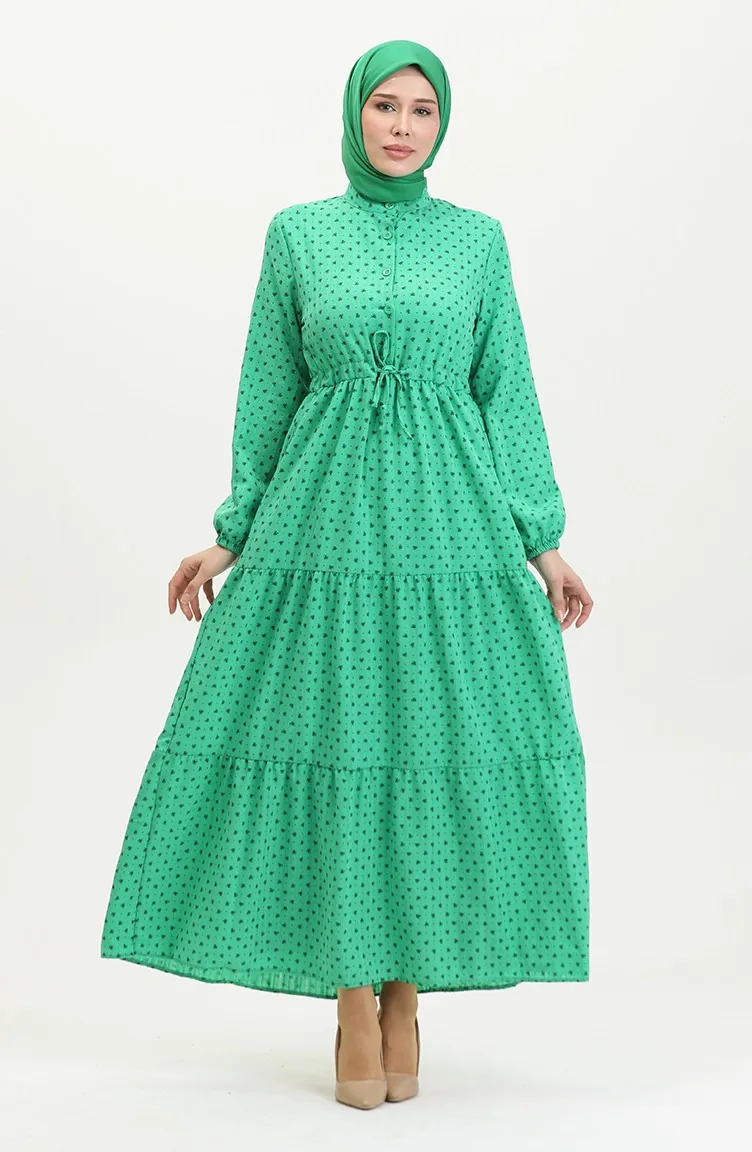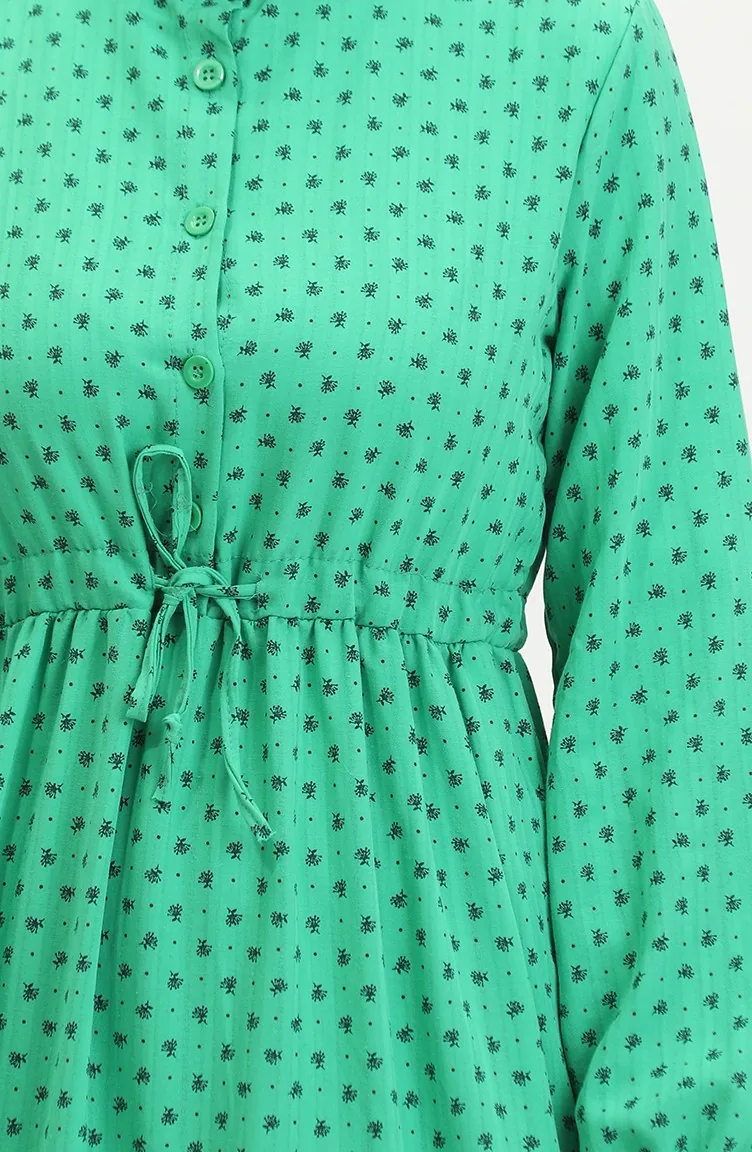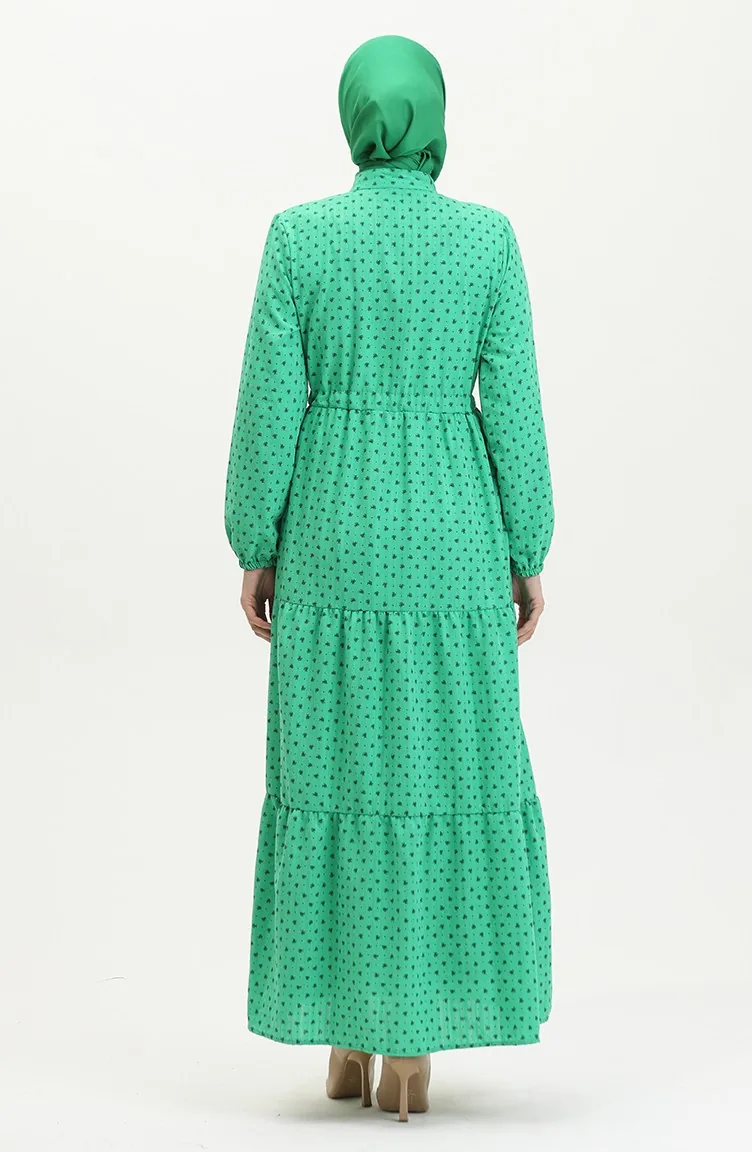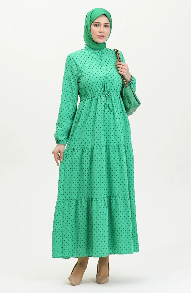 فستان منقوش بأزرار نصفية 0387-07 أخضر 0387-07