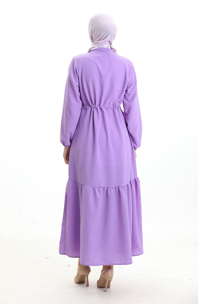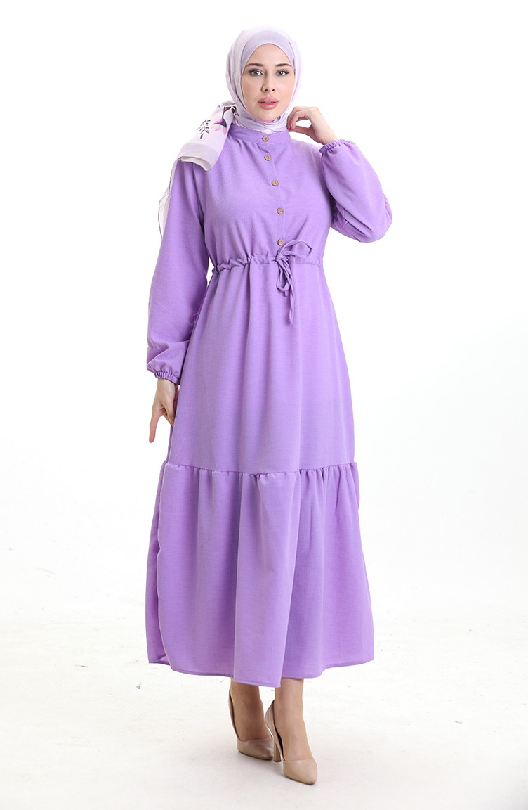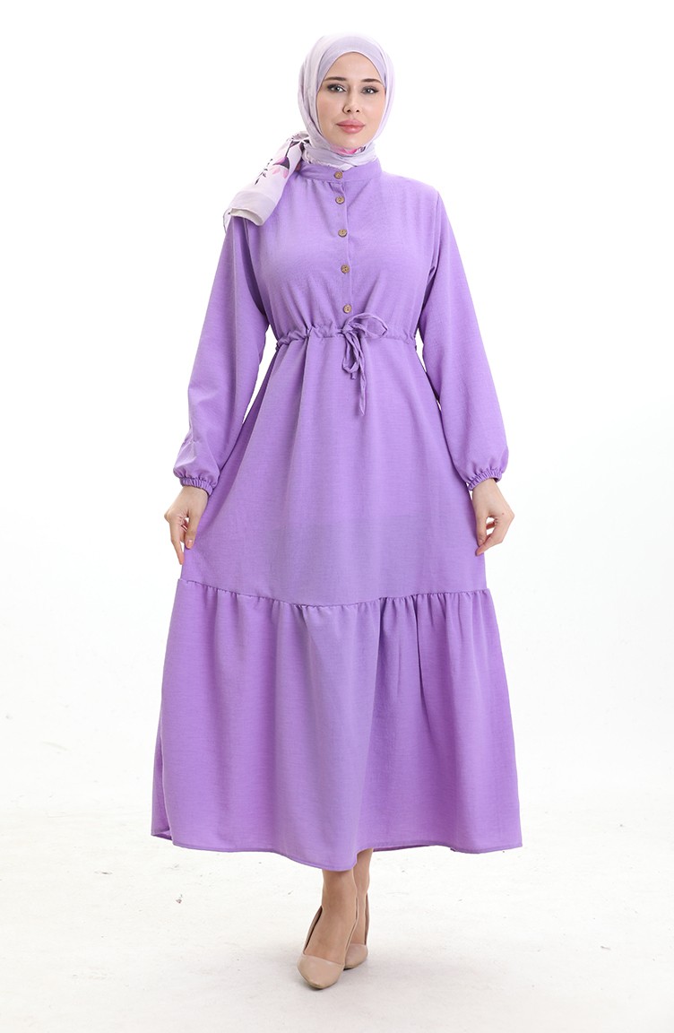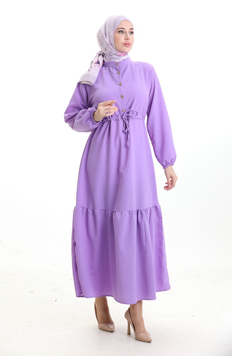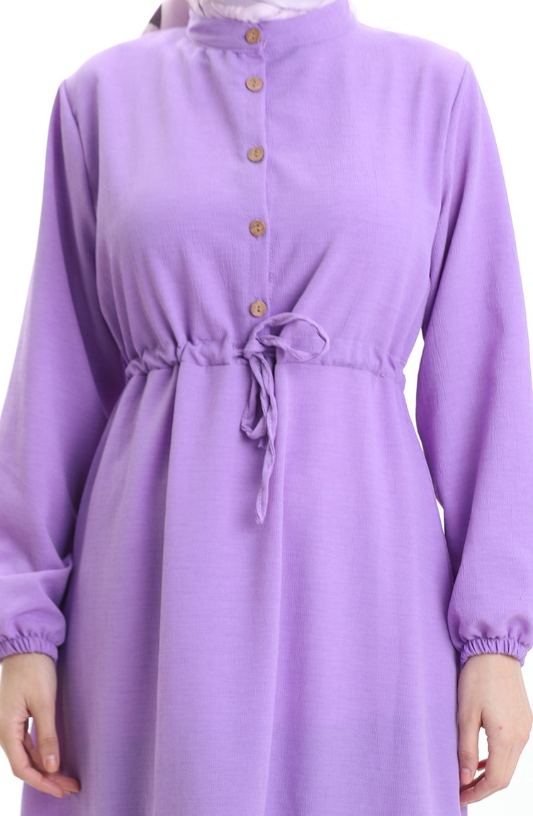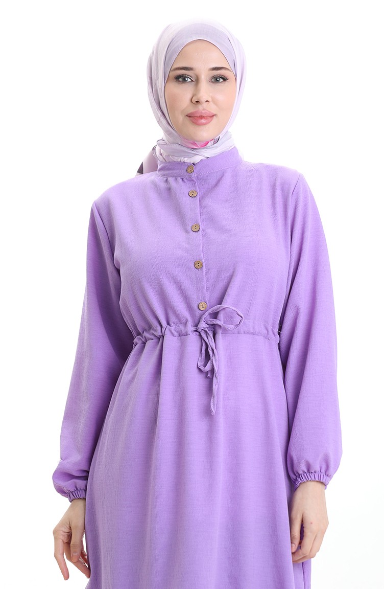 فستان نصف أزرار مع ربطة عند الخصر 0182-08 أرجواني 0182-08