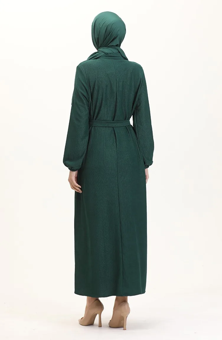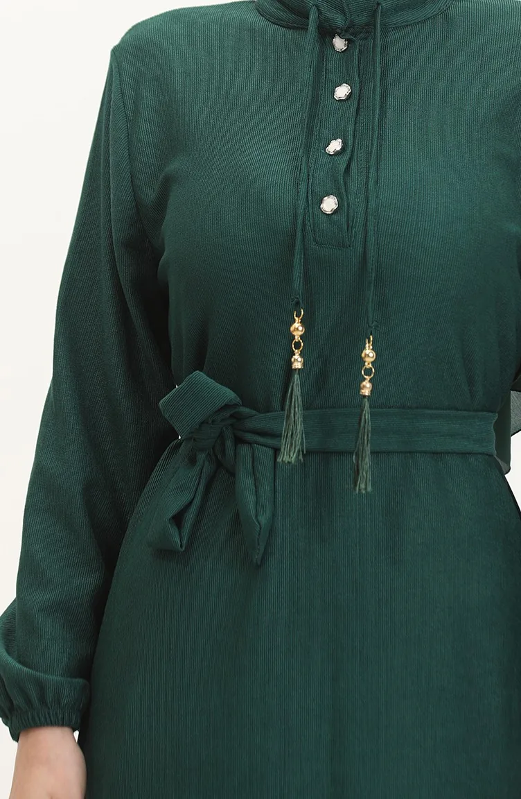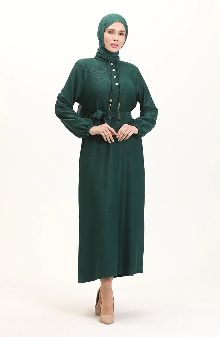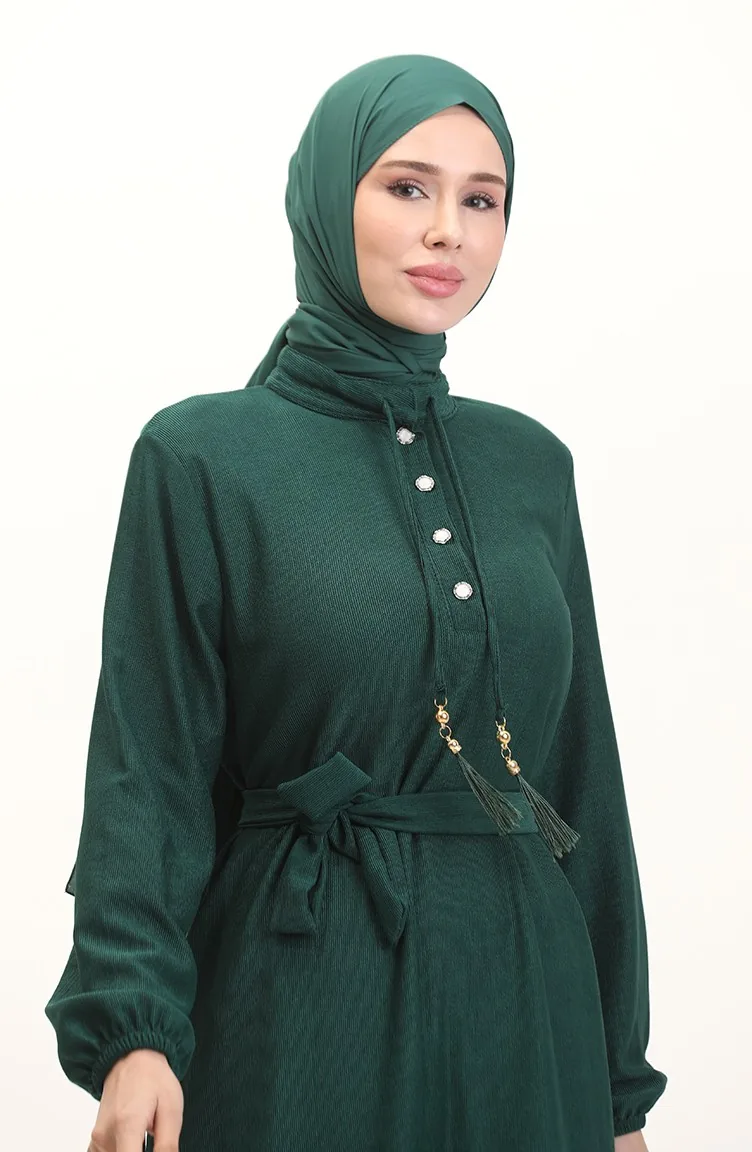 فستان سادة بأزرار 5025-05 أخضر 5025-05