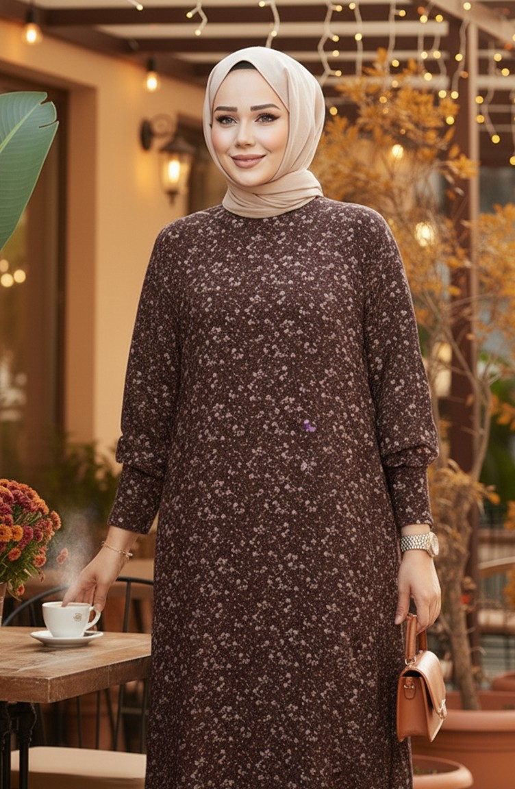 استعمل لون البني. صممه النسيج الشاش. صمم مع القماش المزخرف. من الممكن استعمال المنتج بدون ياقة مع كل ملابس. مناسب لجميع المواسم. القياس التي في الصورة هي قياس العارضة.