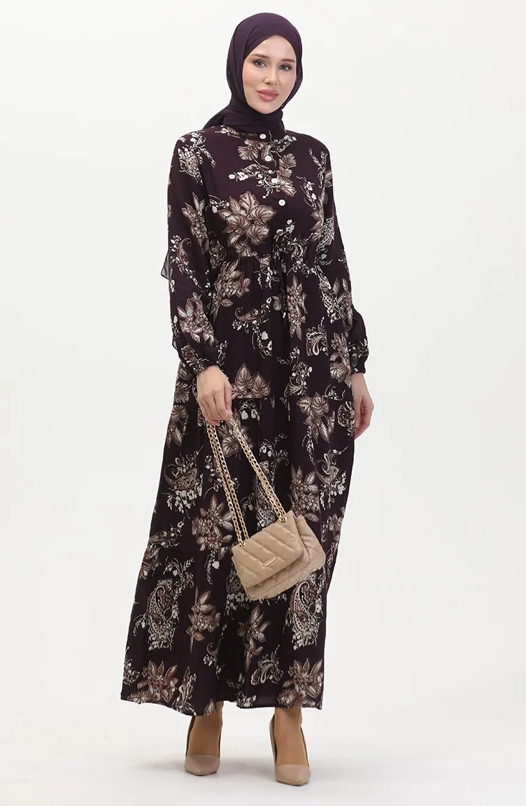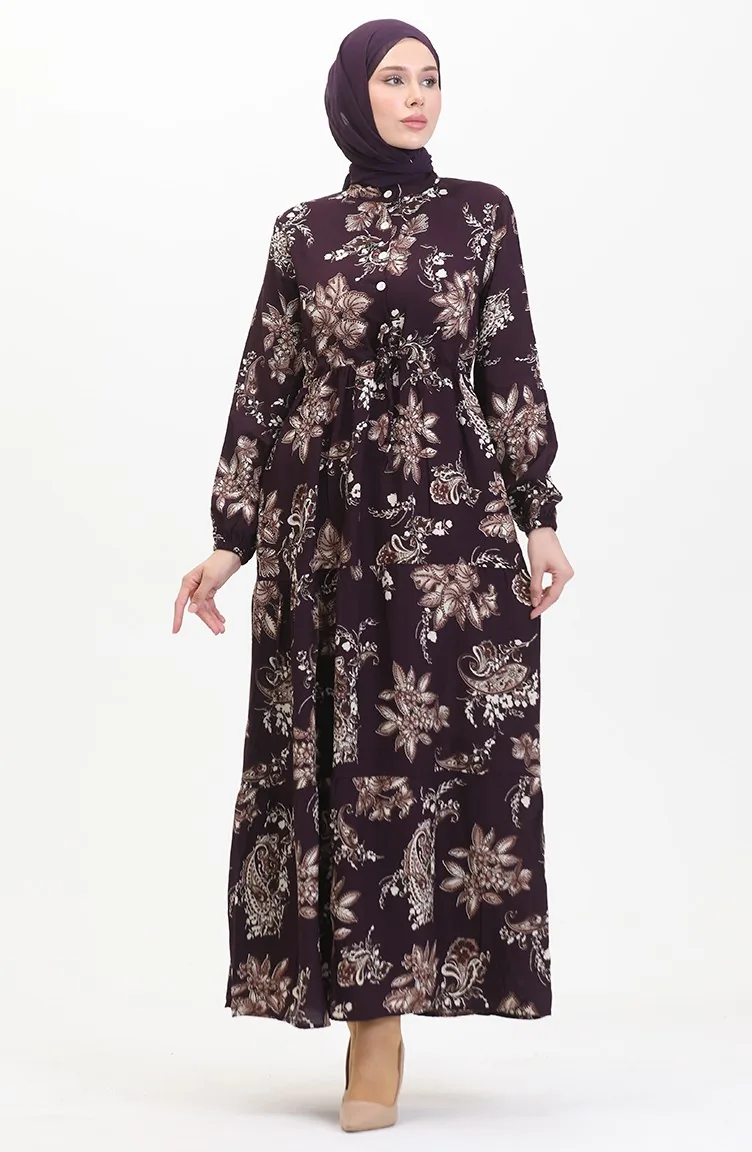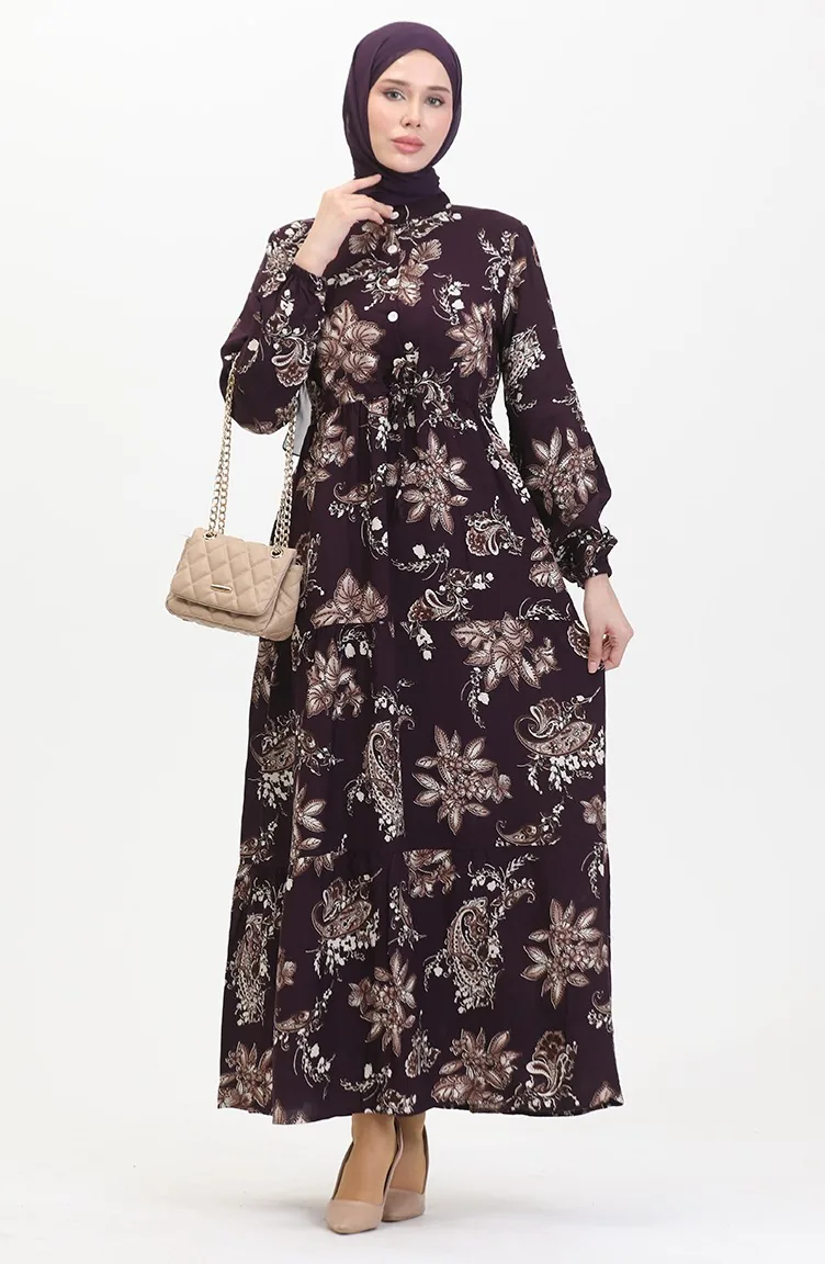 فستان فيسكوز منقوش 0509-01 بنفسجي 0509-01