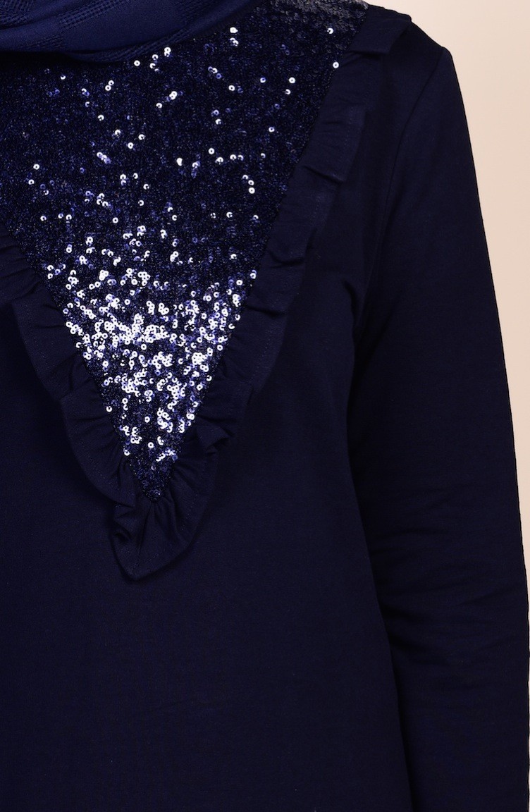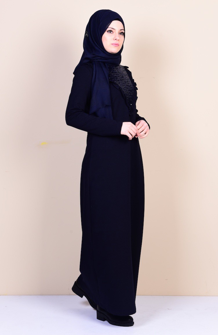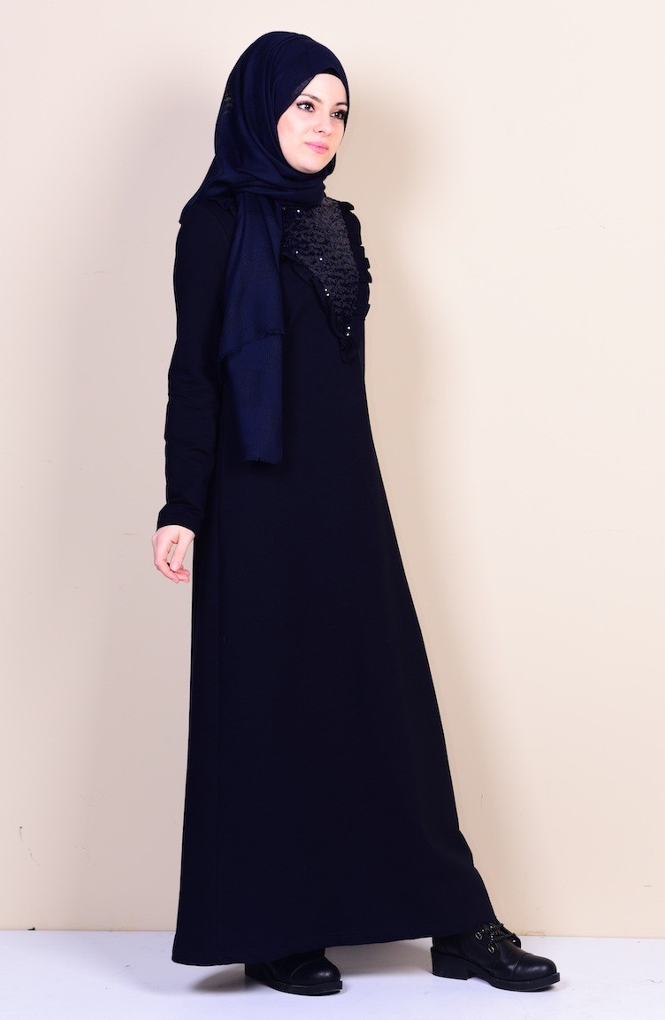 فستان بتفاصيل من الترتر لون كحلي 1322-02