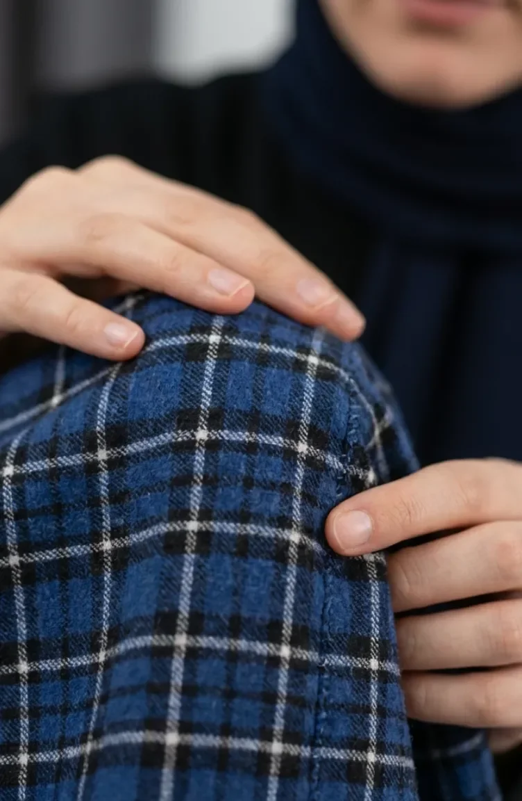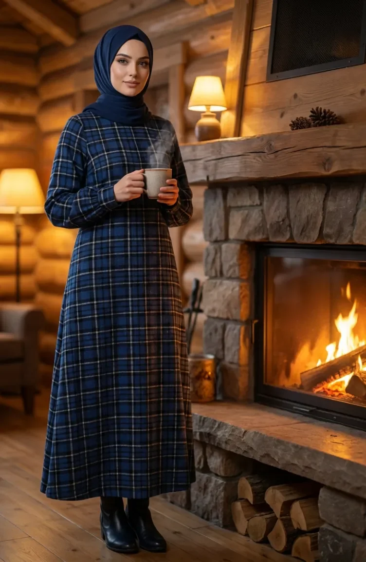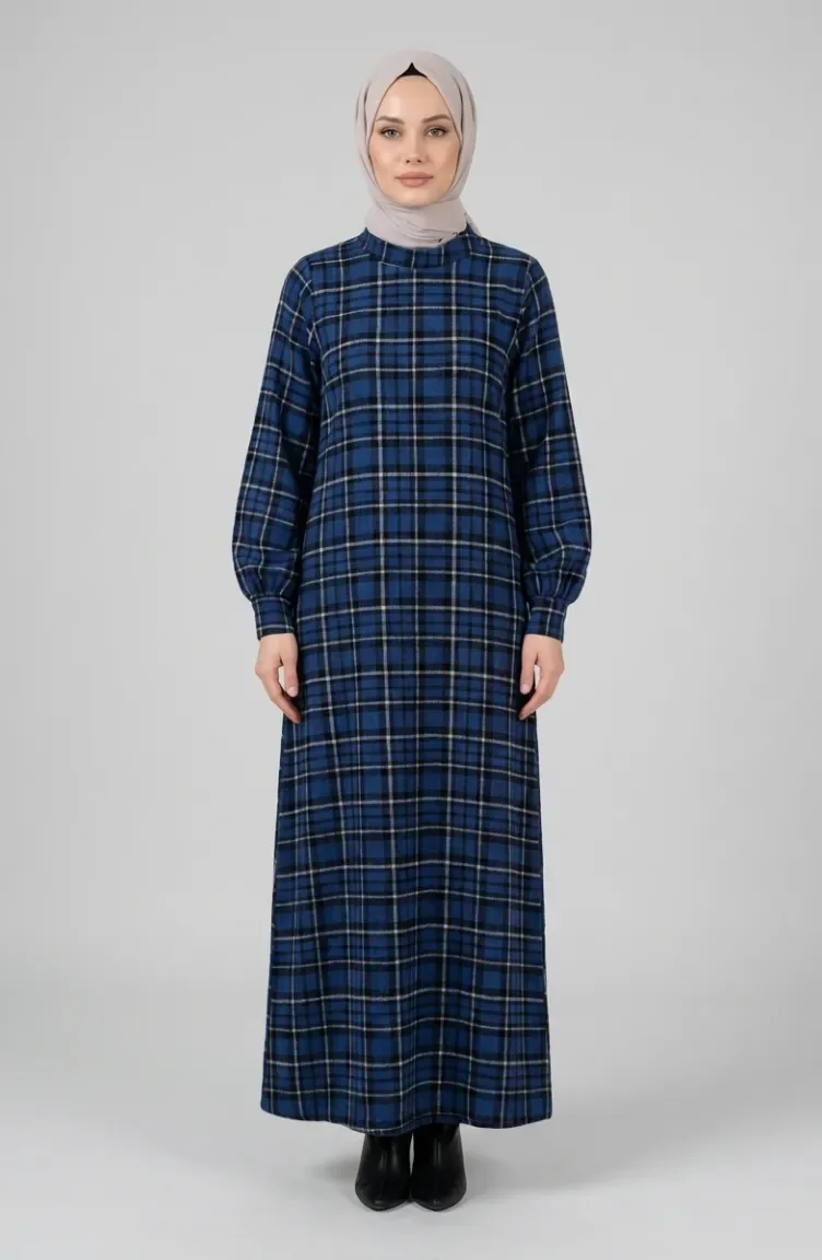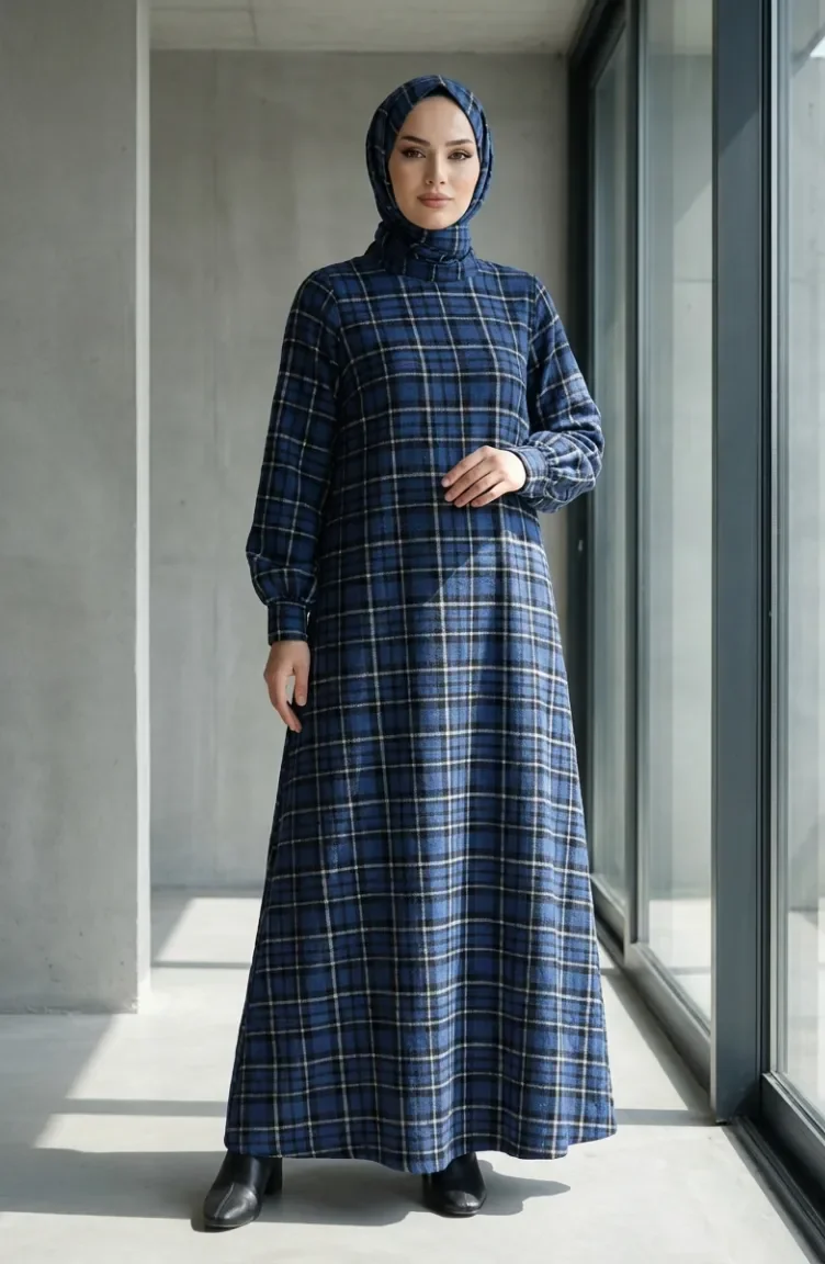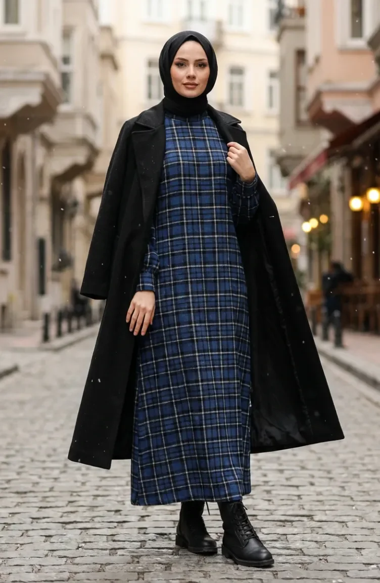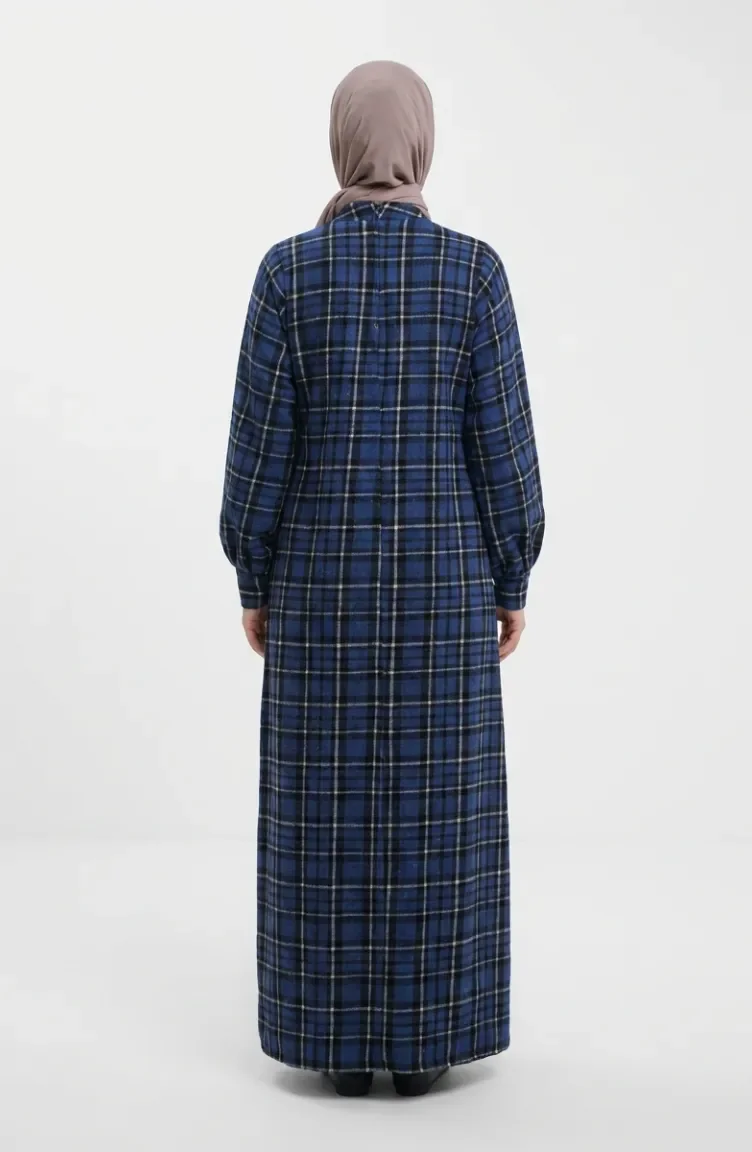 بدلة شتوية بنقشة مربعات، لون أزرق داكن، رقم الموديل 2507-01 2507-01