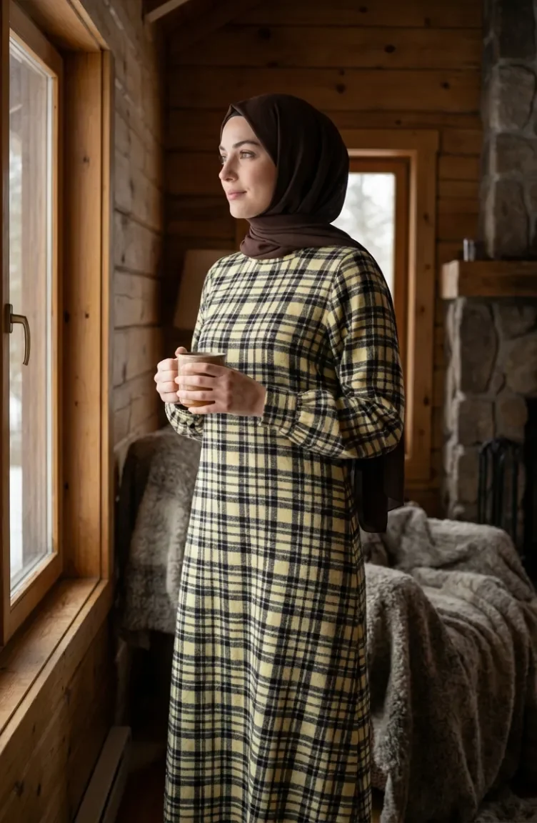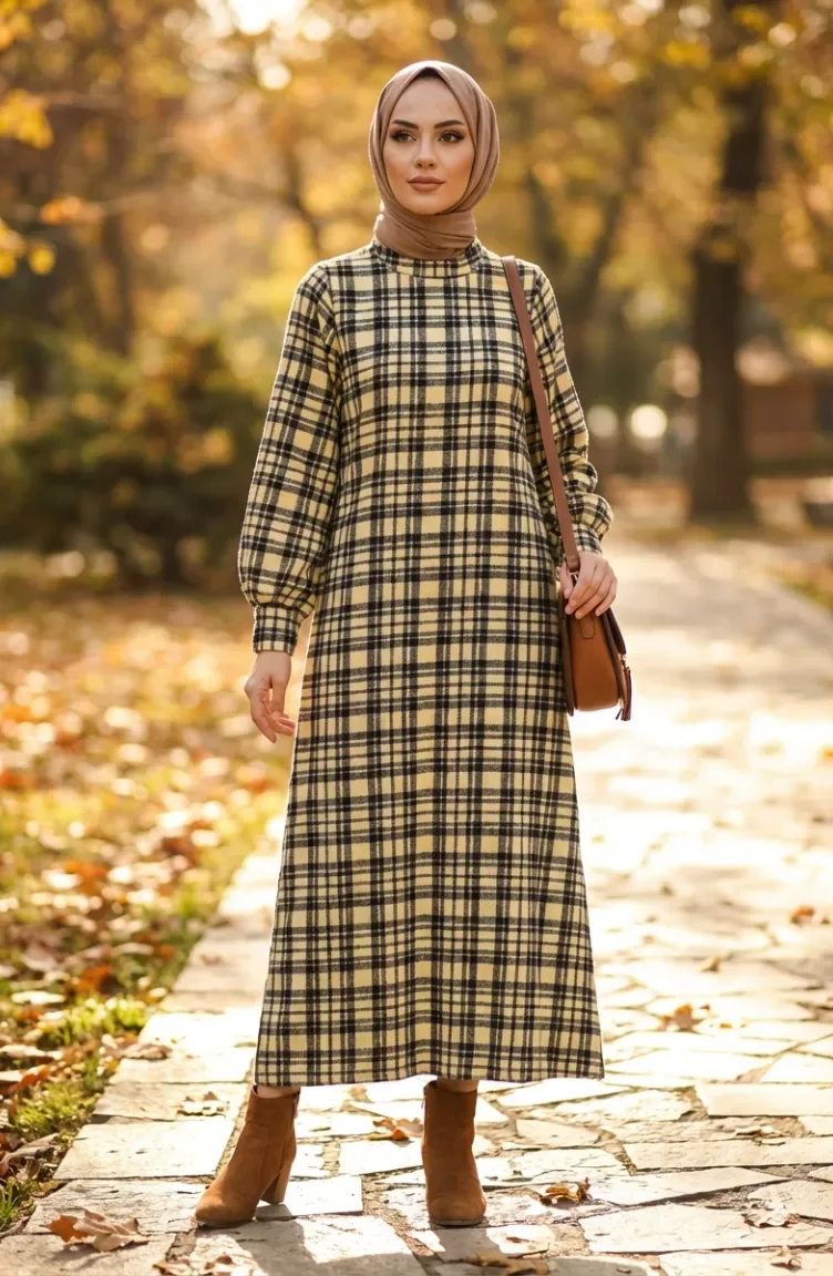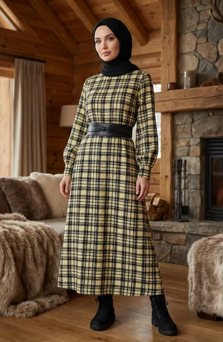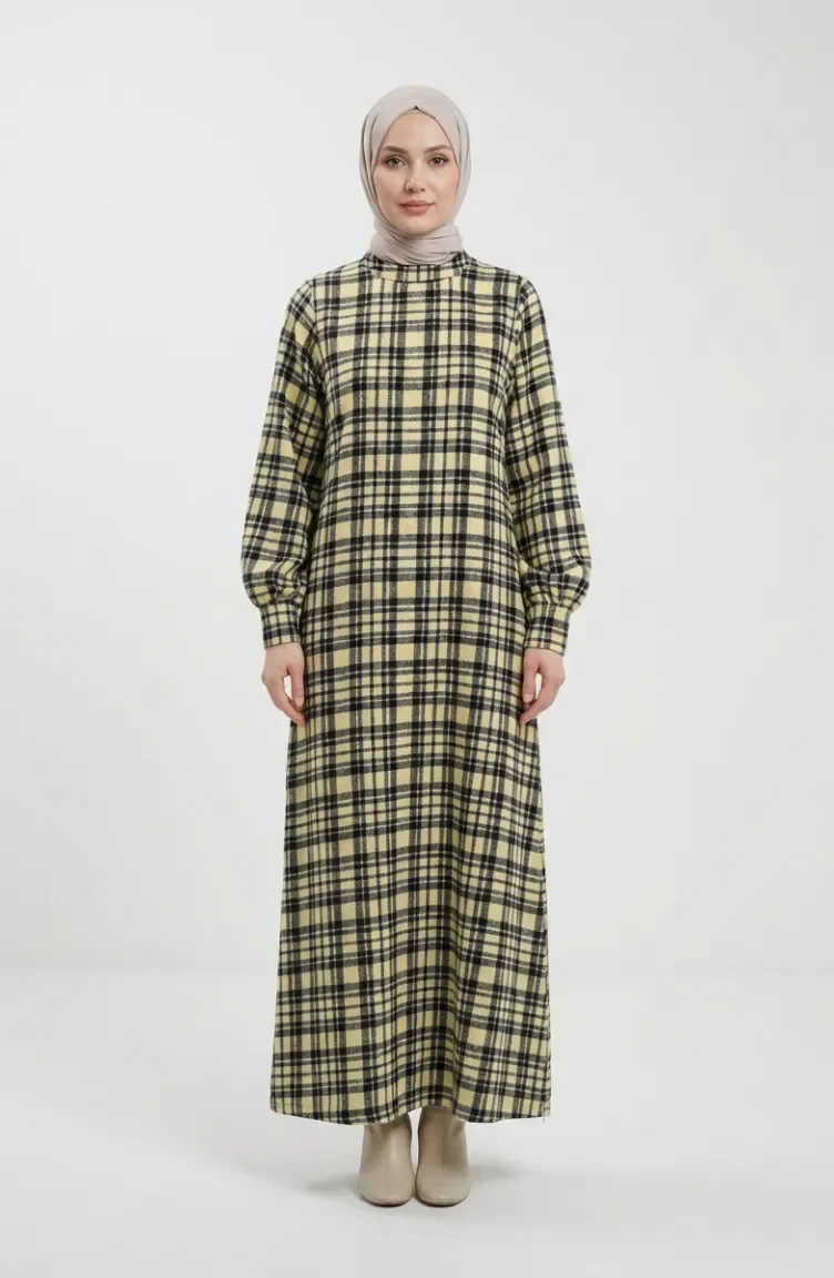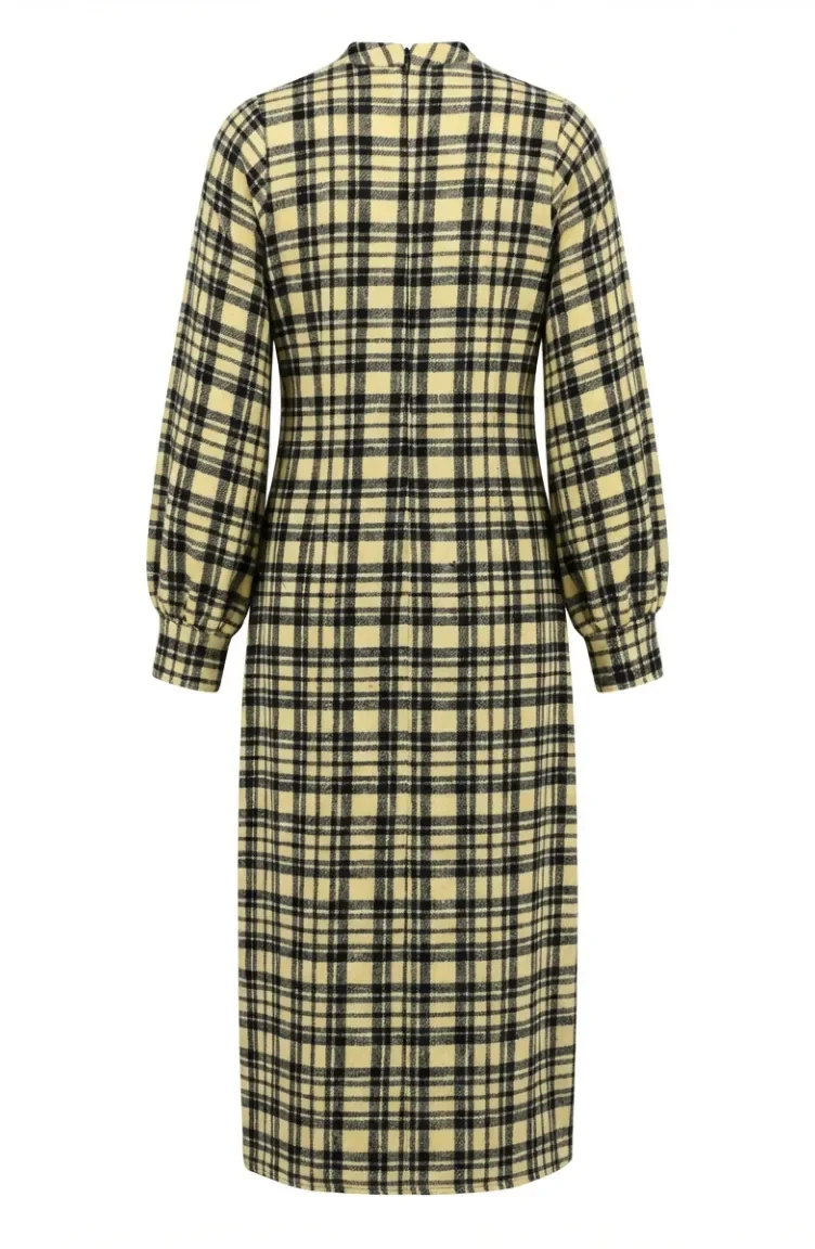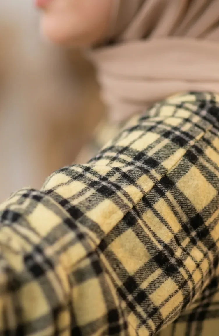 بدلة شتوية بنقشة مربعات على طراز الحطاب، لون أصفر، رقم الموديل 2507-02 2507-02