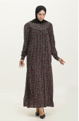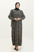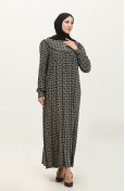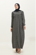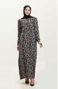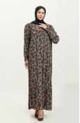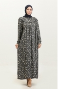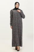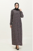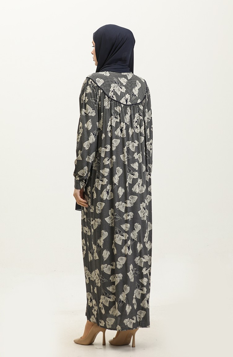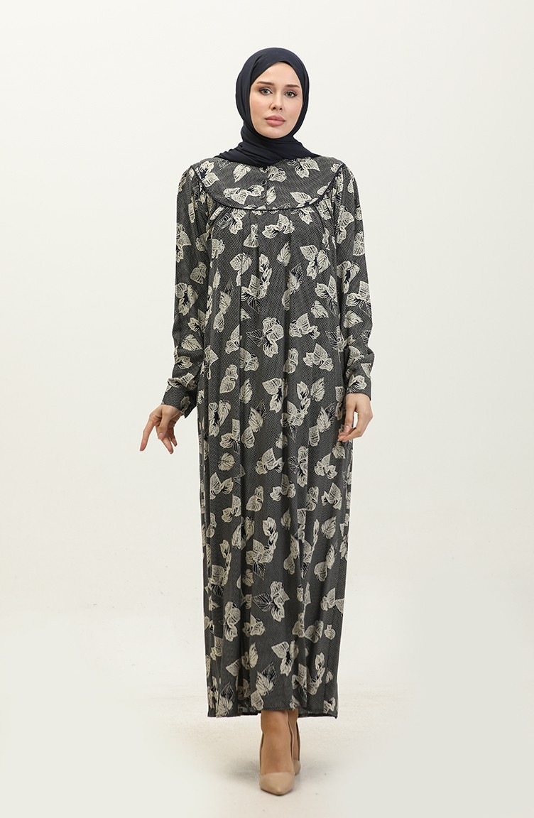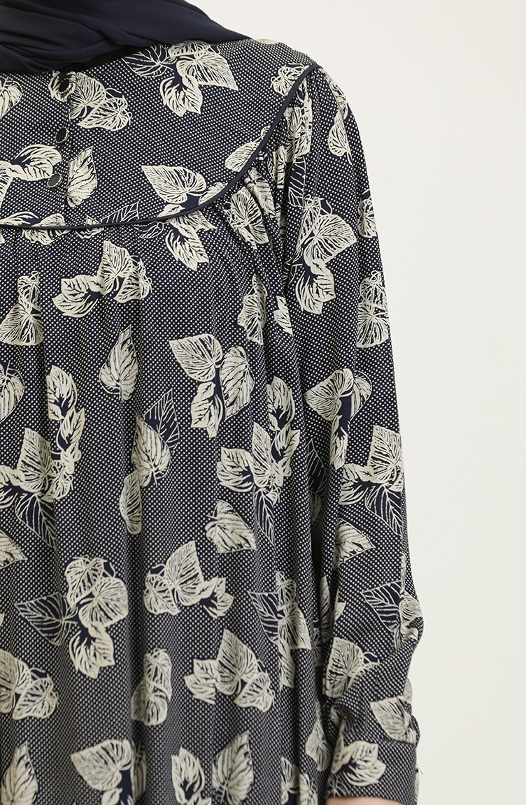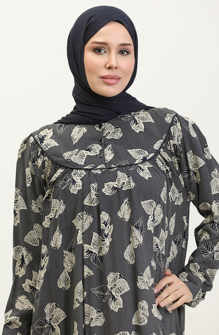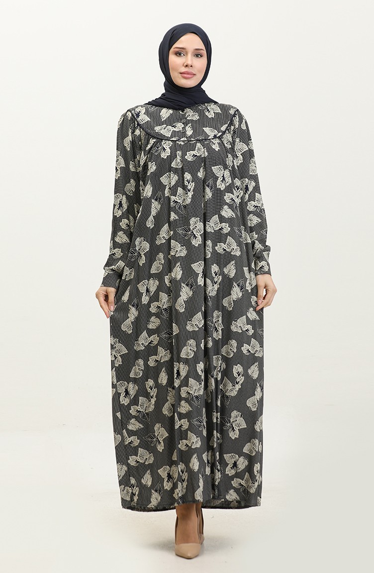 فستان فيسكوز منقوش بمقاسات كبيرة 4473C-01 أزرق داكن 4473C-01