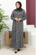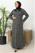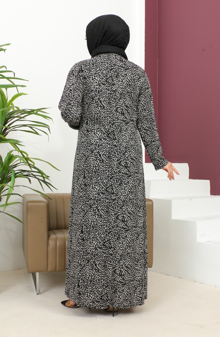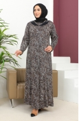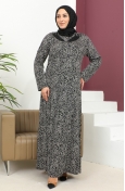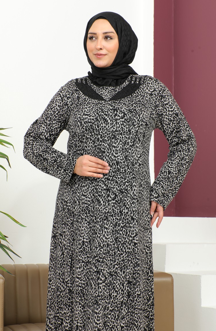 فستان بنقشة حجرية مقاس كبير 4827-02 أسود 4827-02