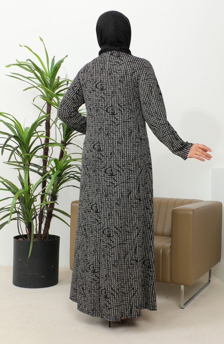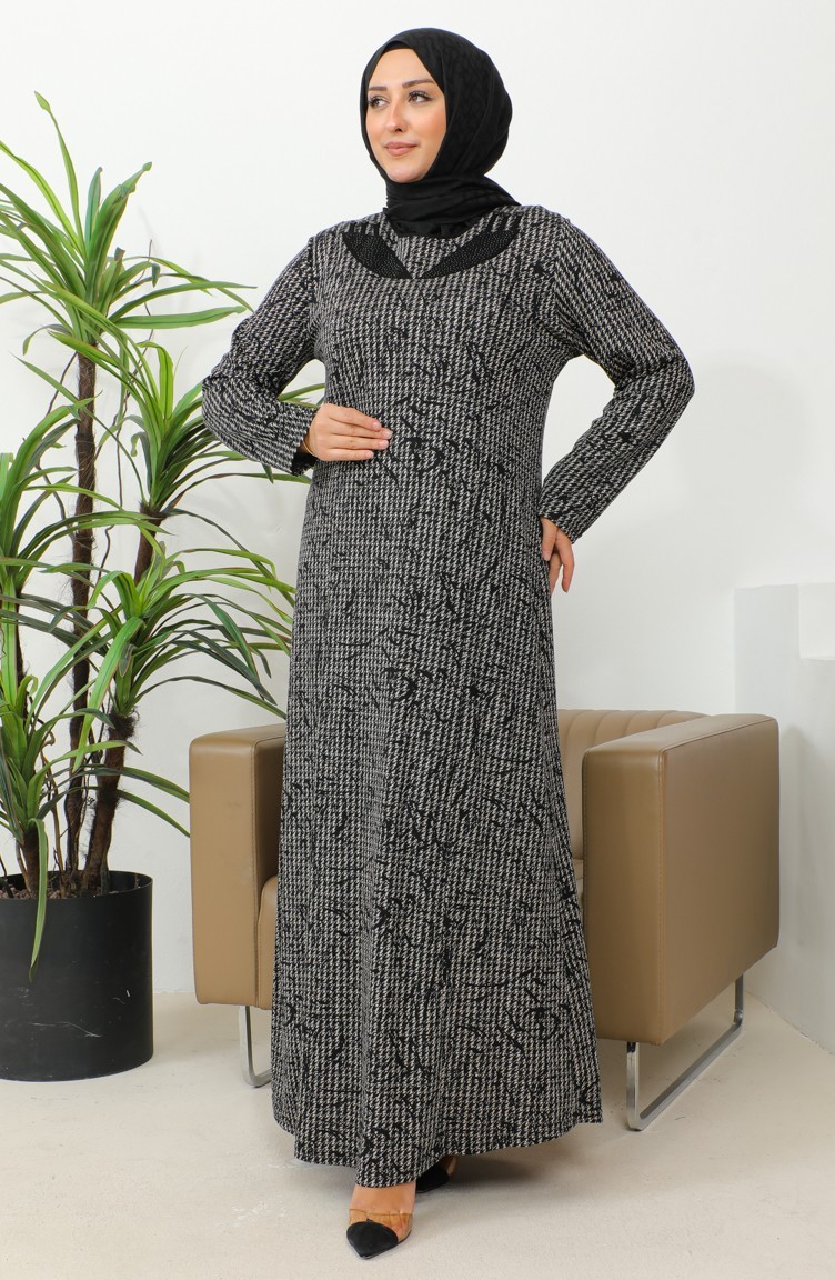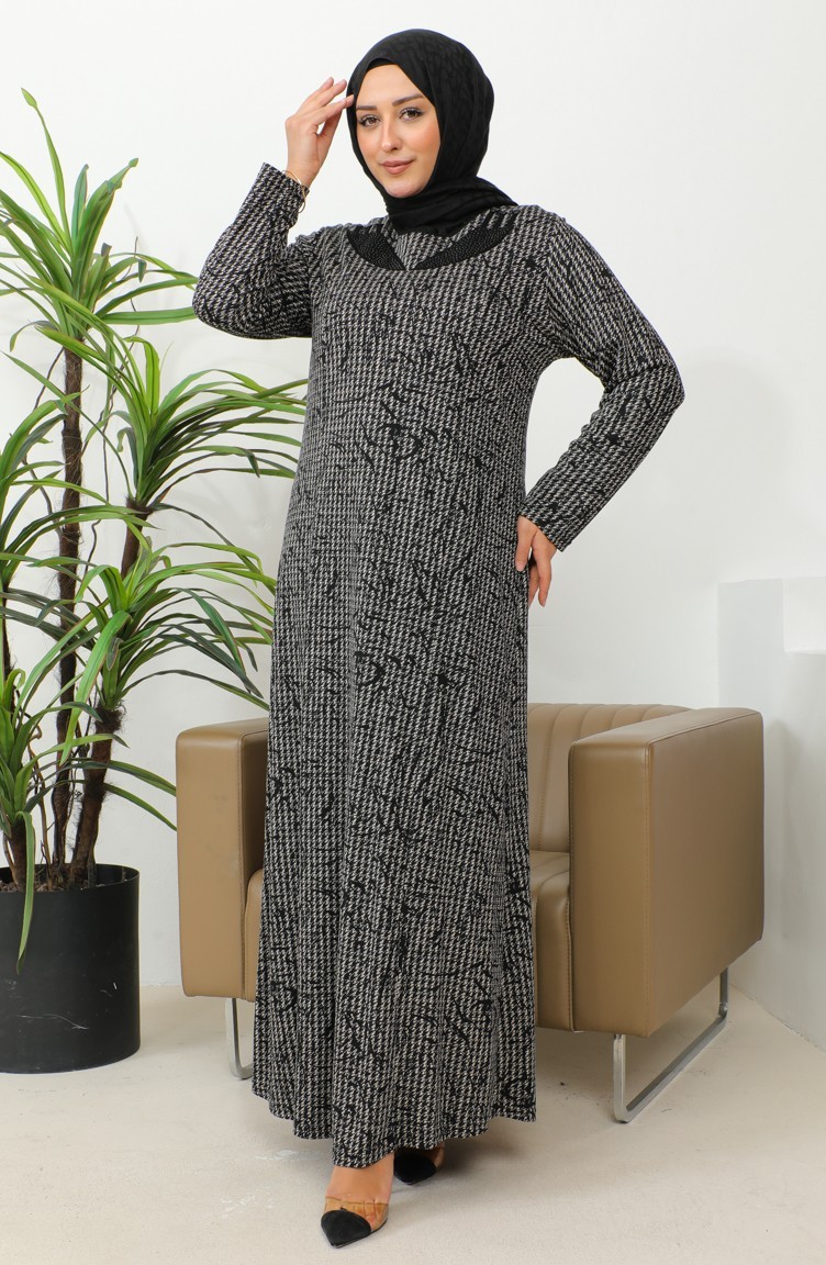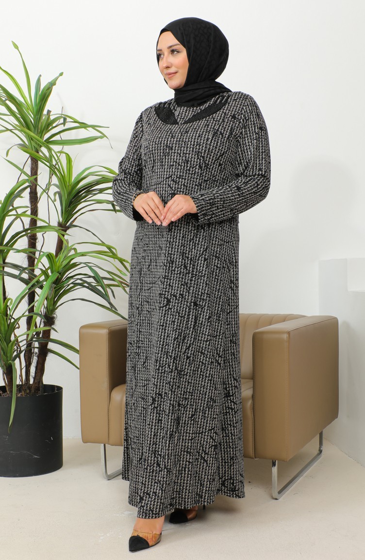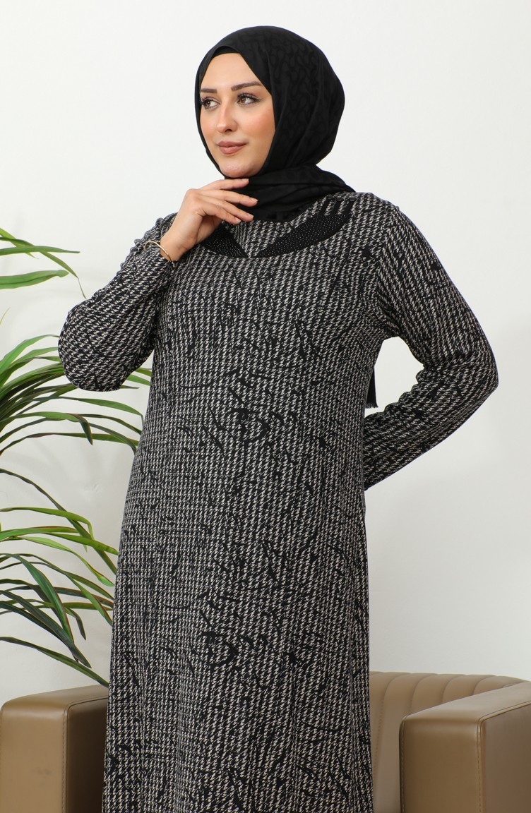 فستان بنقشة حجرية مقاس كبير 4827A-01 أسود 4827A-01