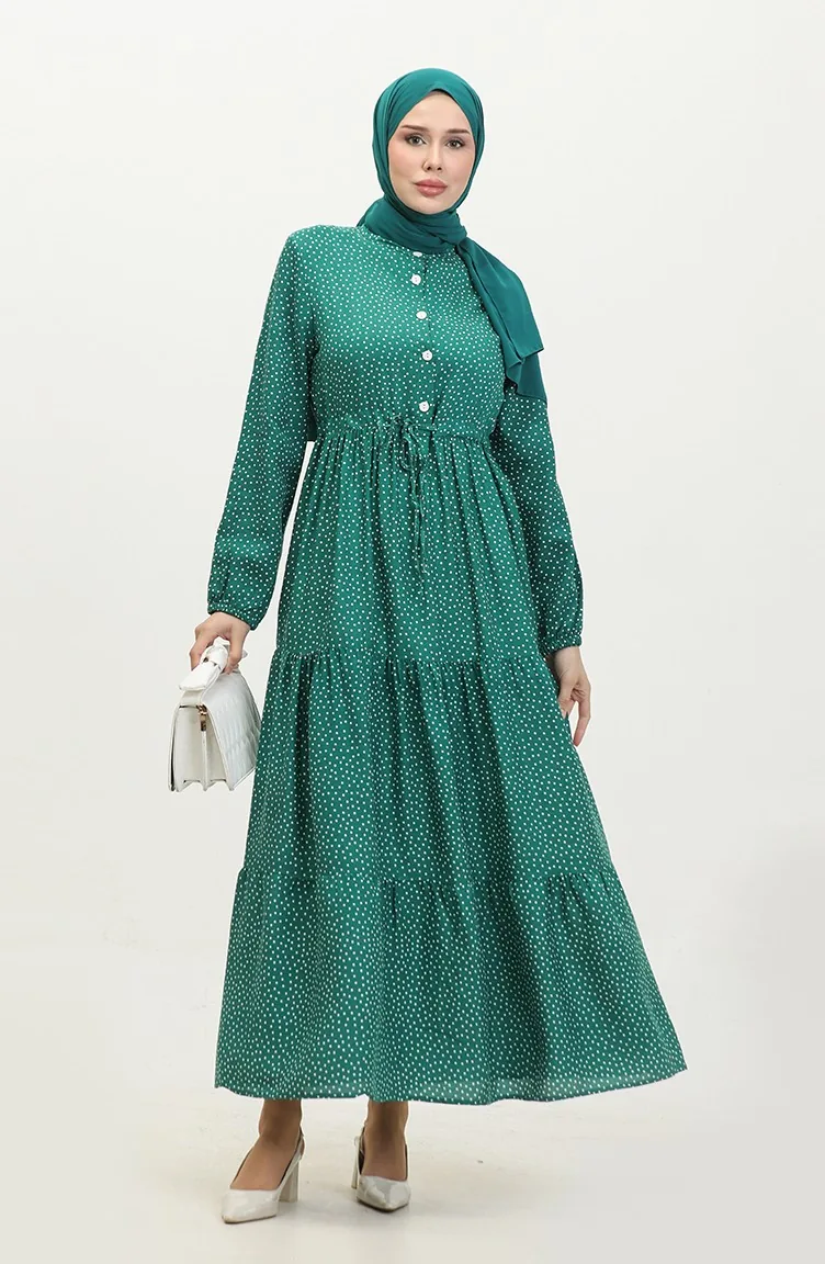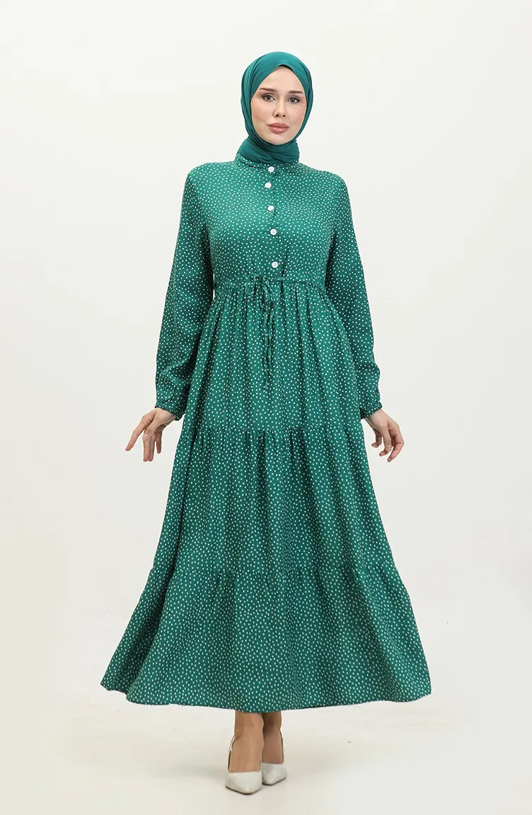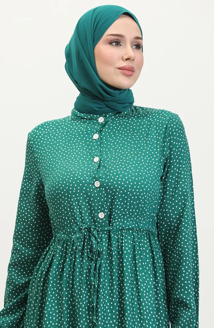 فستان بنقش نقطة للمحجبات 0372-04 أخضر زمردي 0372-04