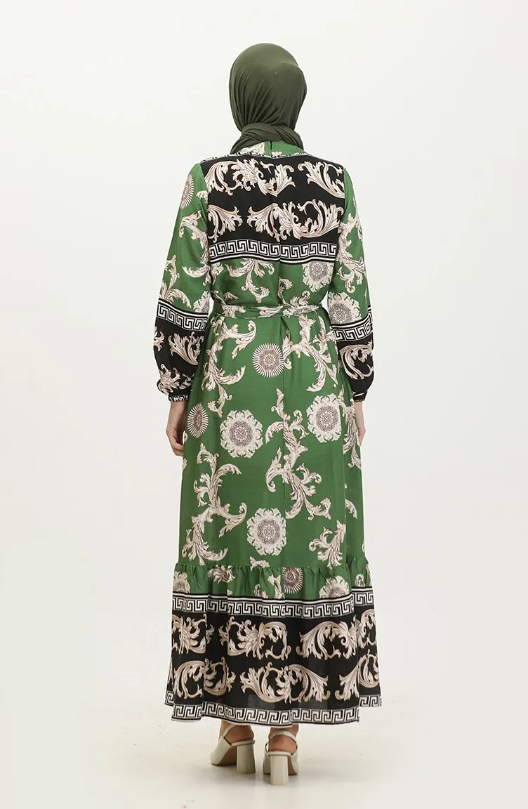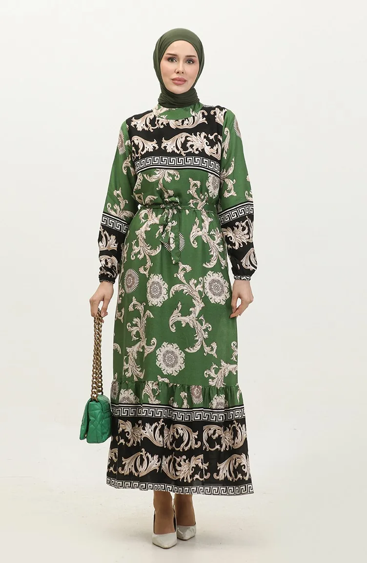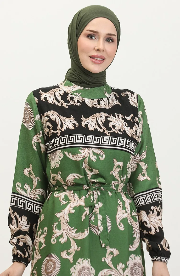 فستان منقوش للمحجبات 0377-02 أسود أخضر 0377-02