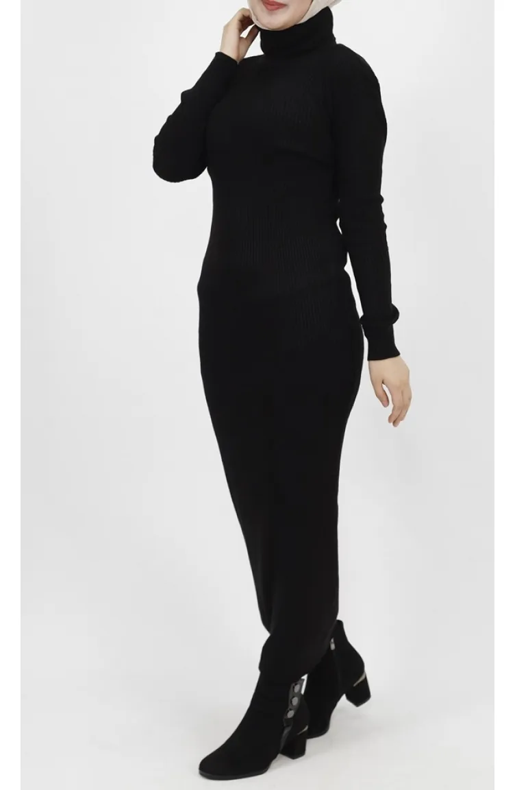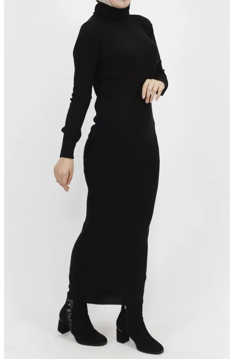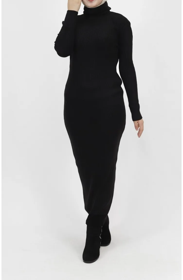 فستان تريكو بتفاصيل ياقة عالية 1032-06 لون أسود 1032-06