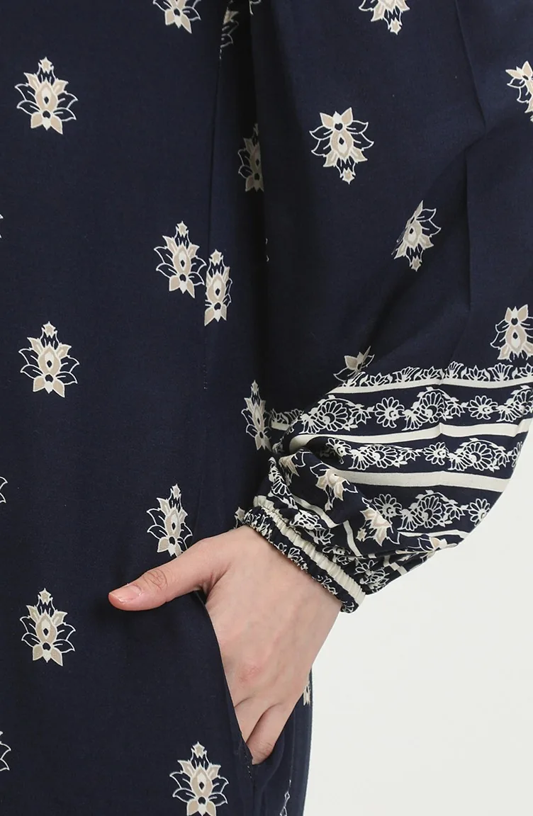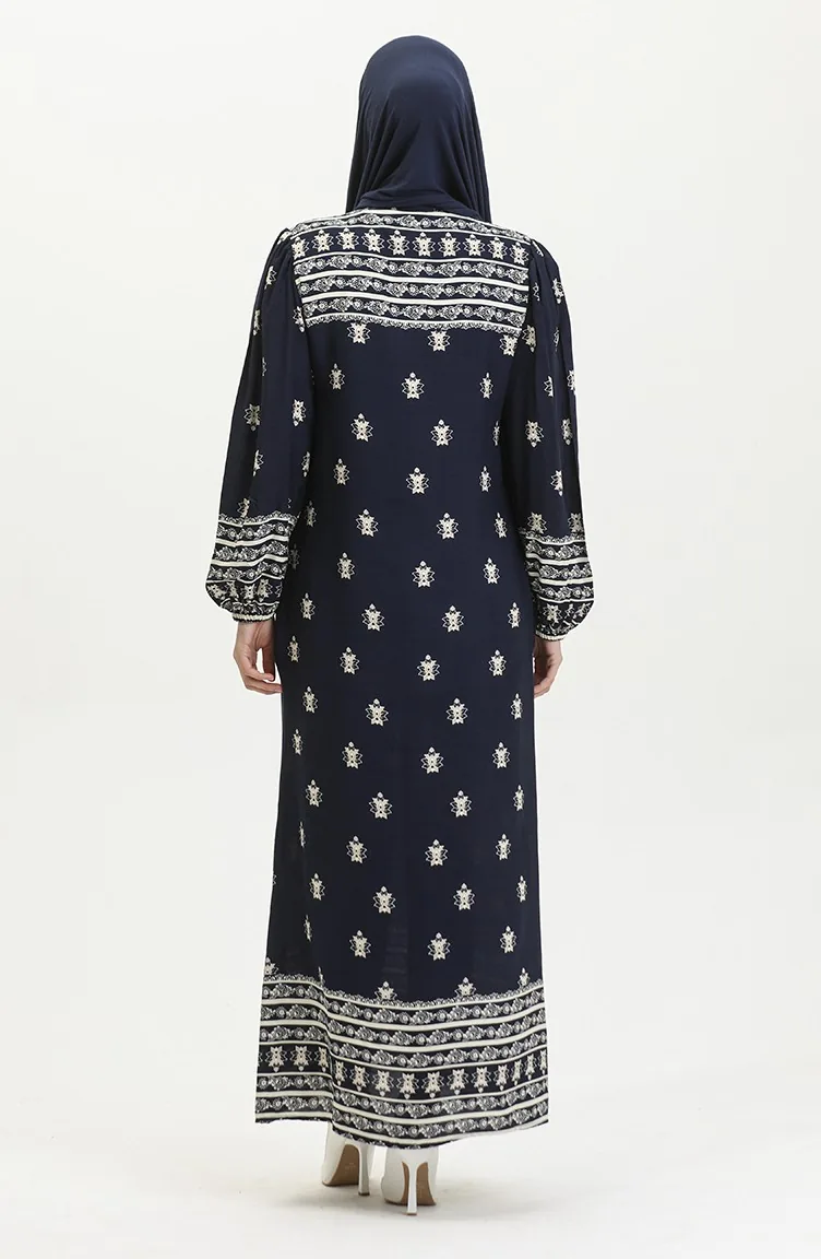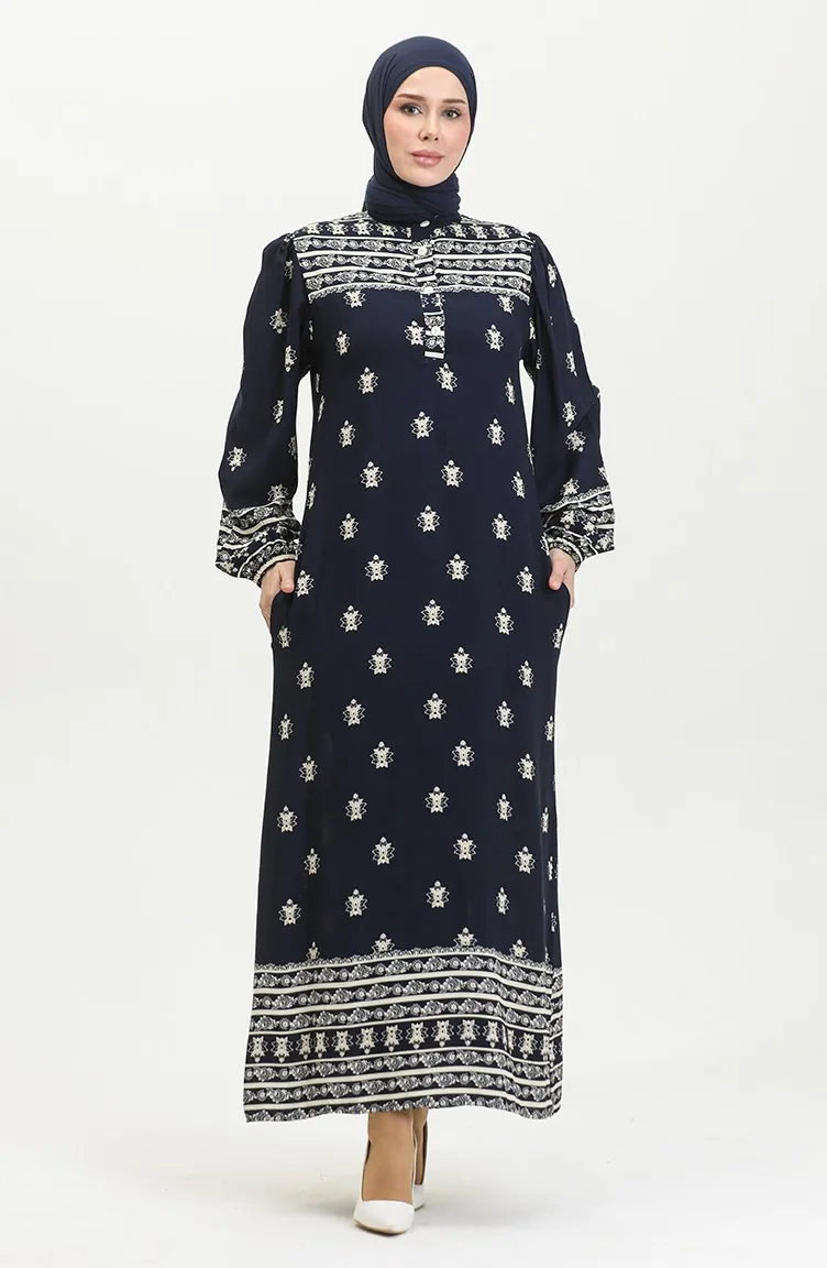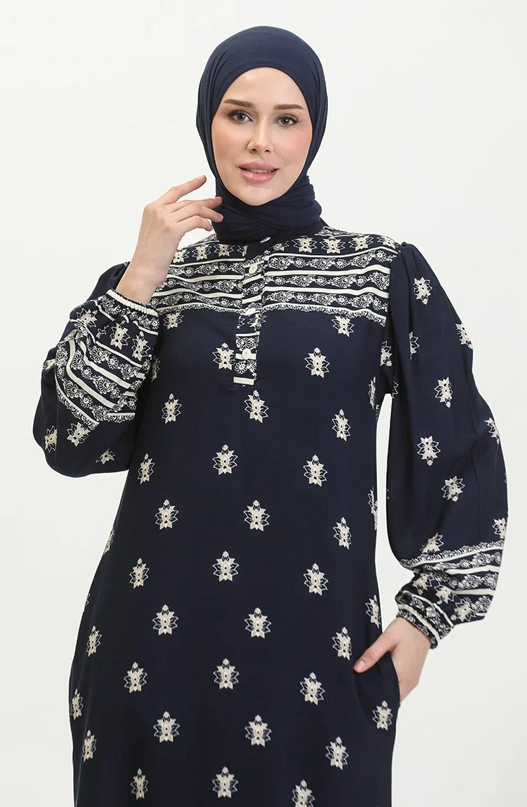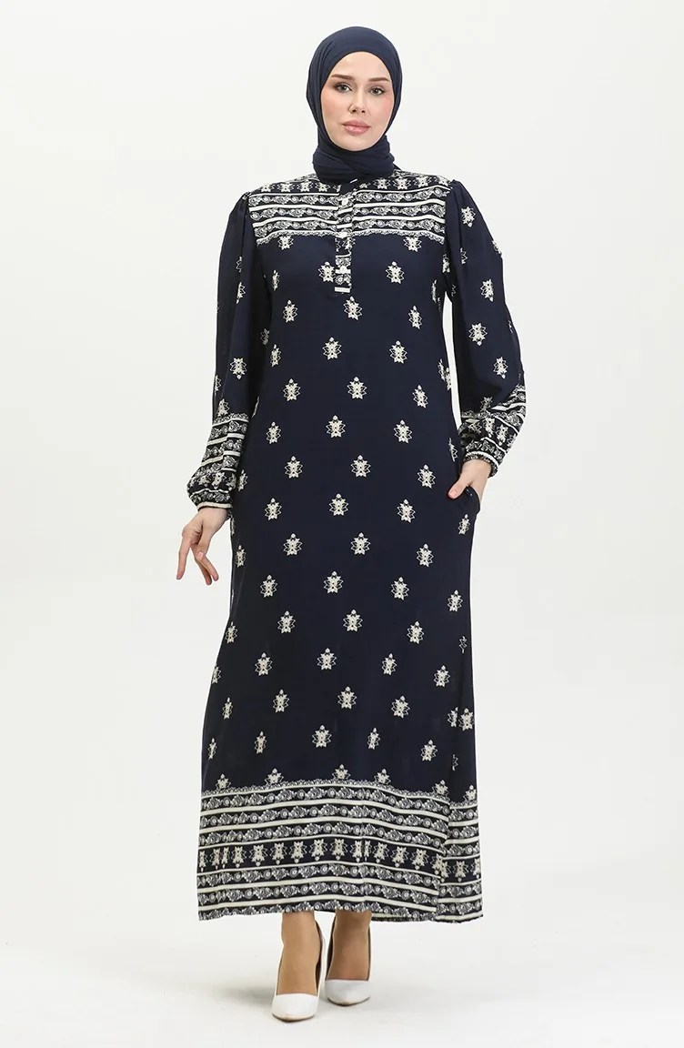 فستان فيسكوز منقوش 0397-04 كحلي 0397-04
