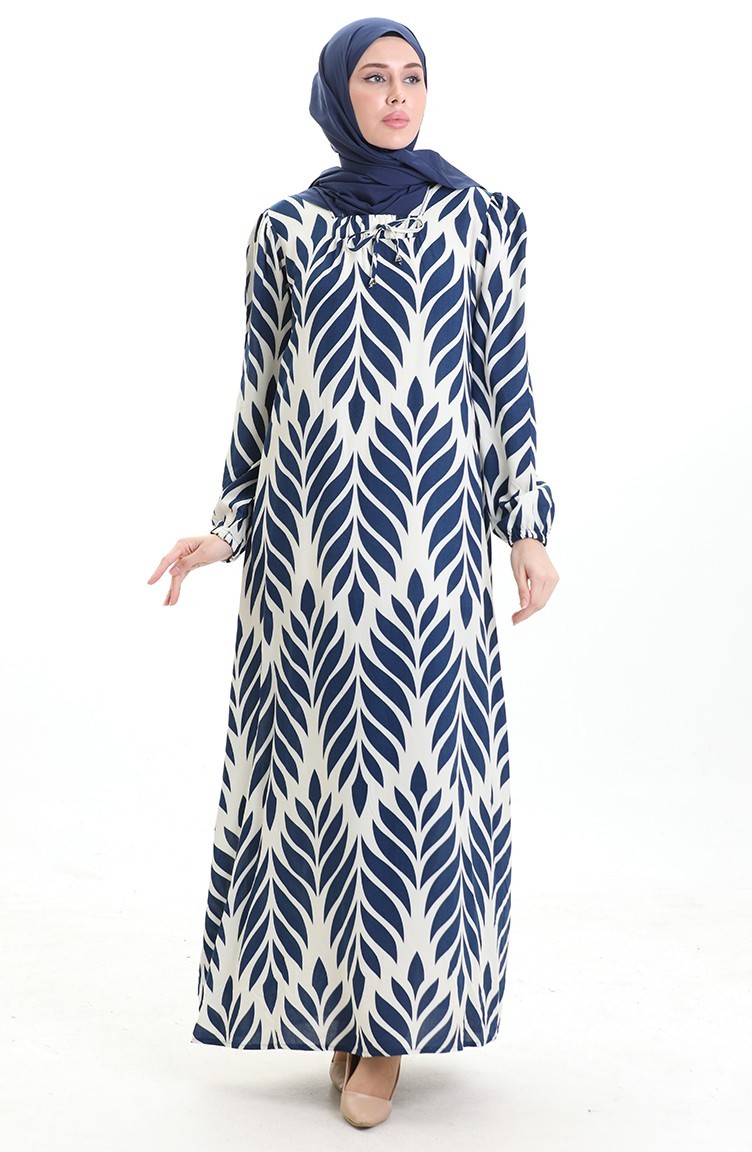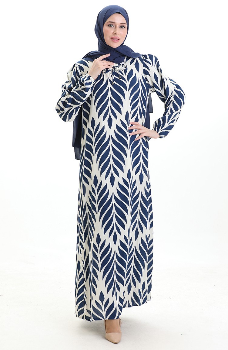 فستان فيسكوز بياقة مربعة 994585I-04 أزرق داكن 994585I-04