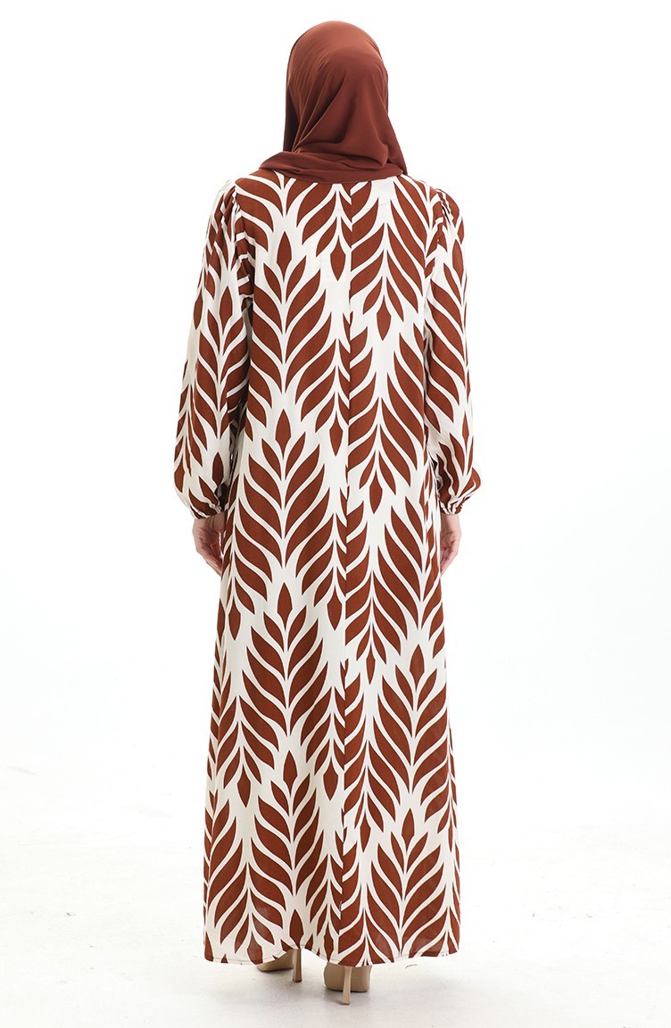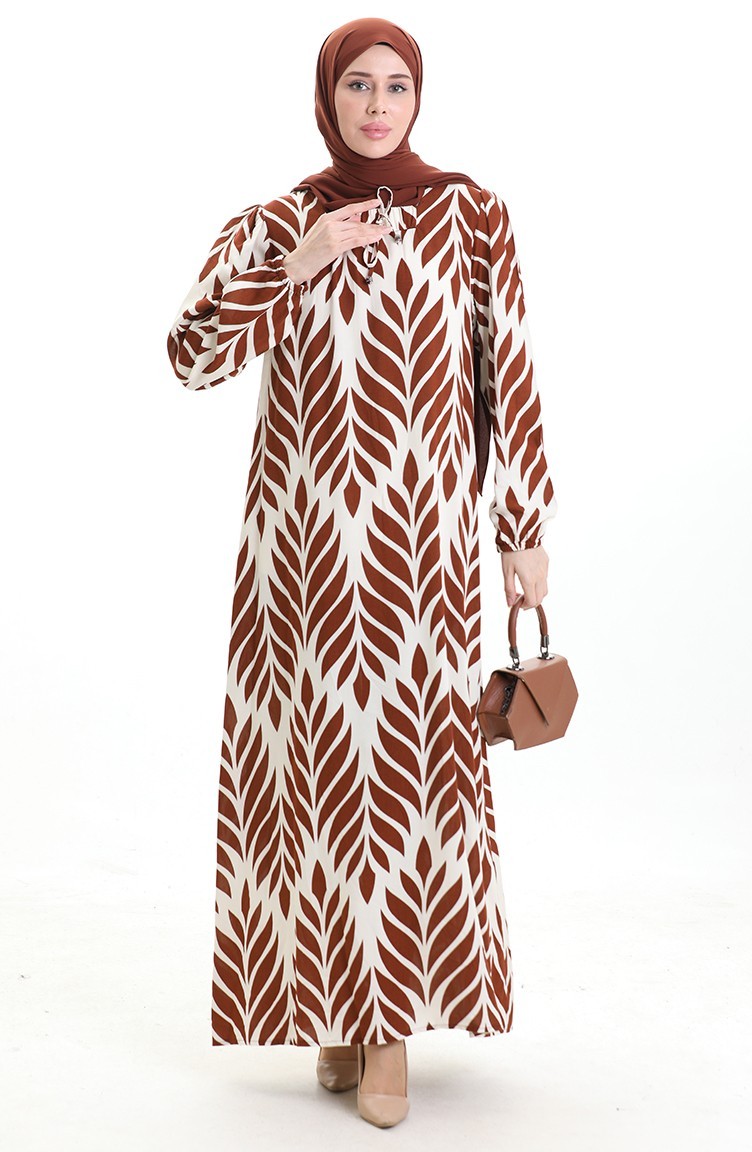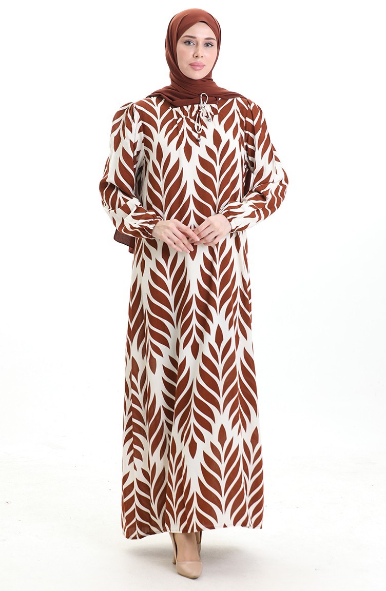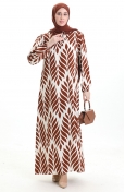 فستان فيسكوز بياقة مربعة 994585I-05 بني 994585I-05