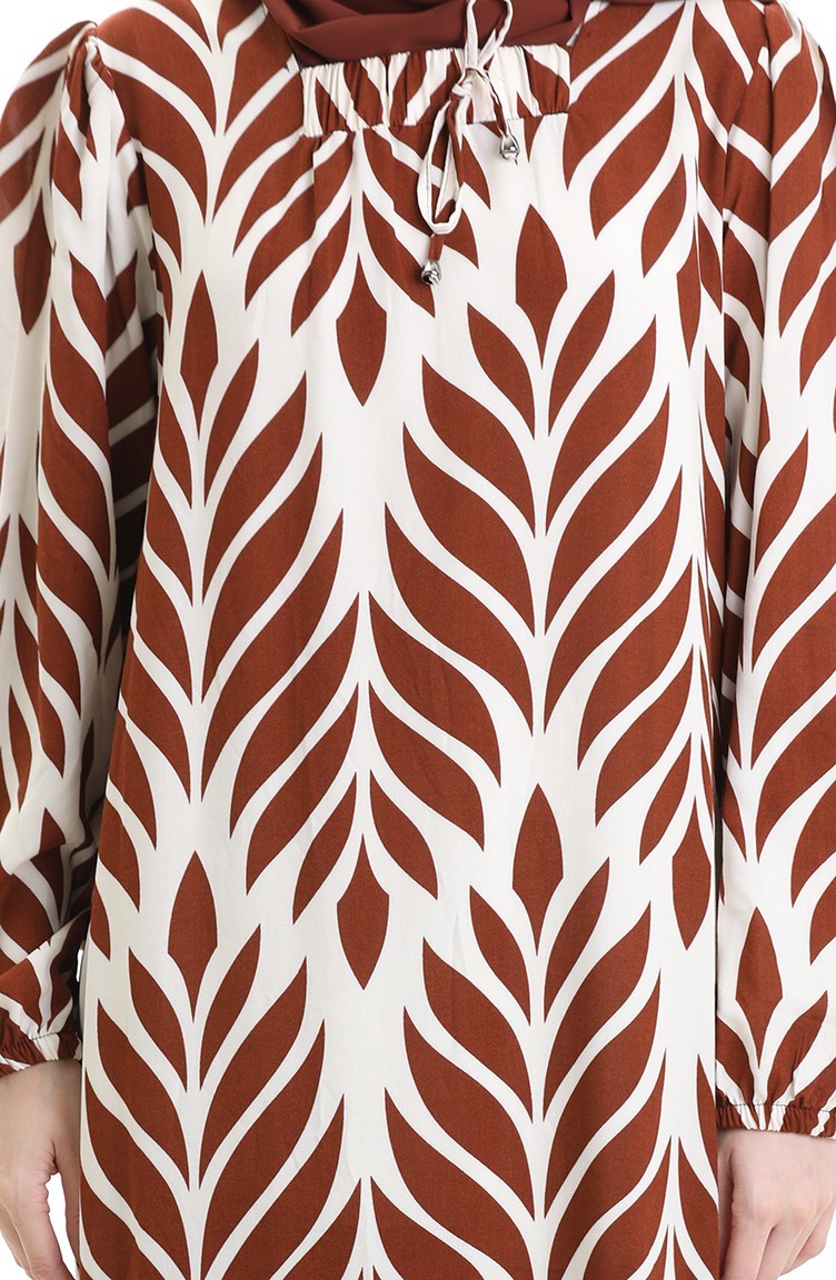 استعمل لون البني. فسكوزي نوع من النسيج الصناعي ومريحة للاستخدام. صمم مع القماش المزخرف. المنتج طويلة الأكمام. مناسب للاستخدام في الصيف. نساء. هناك مقاسات كبيرة.