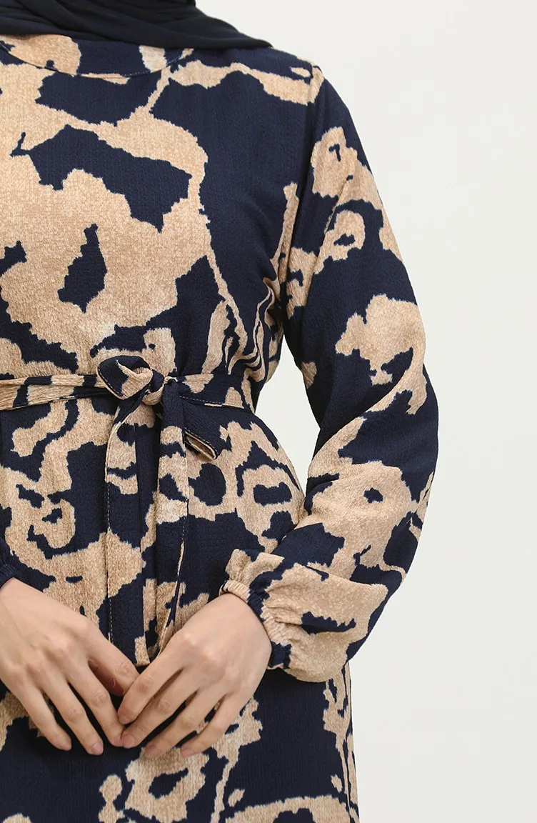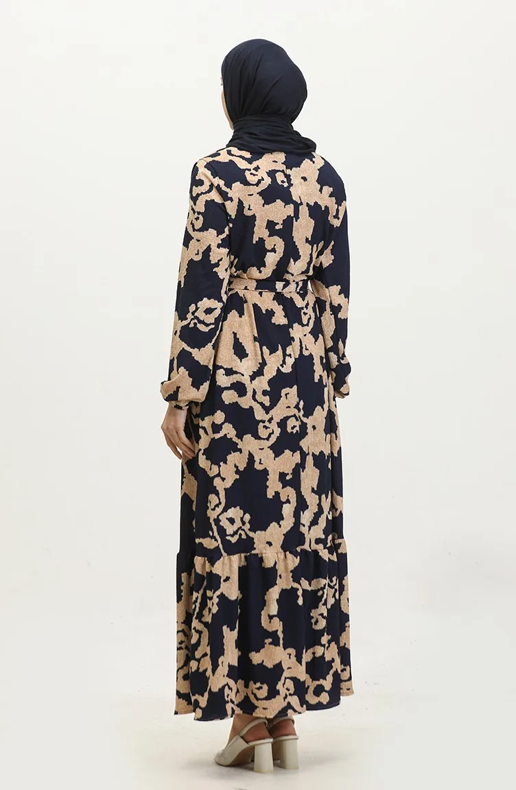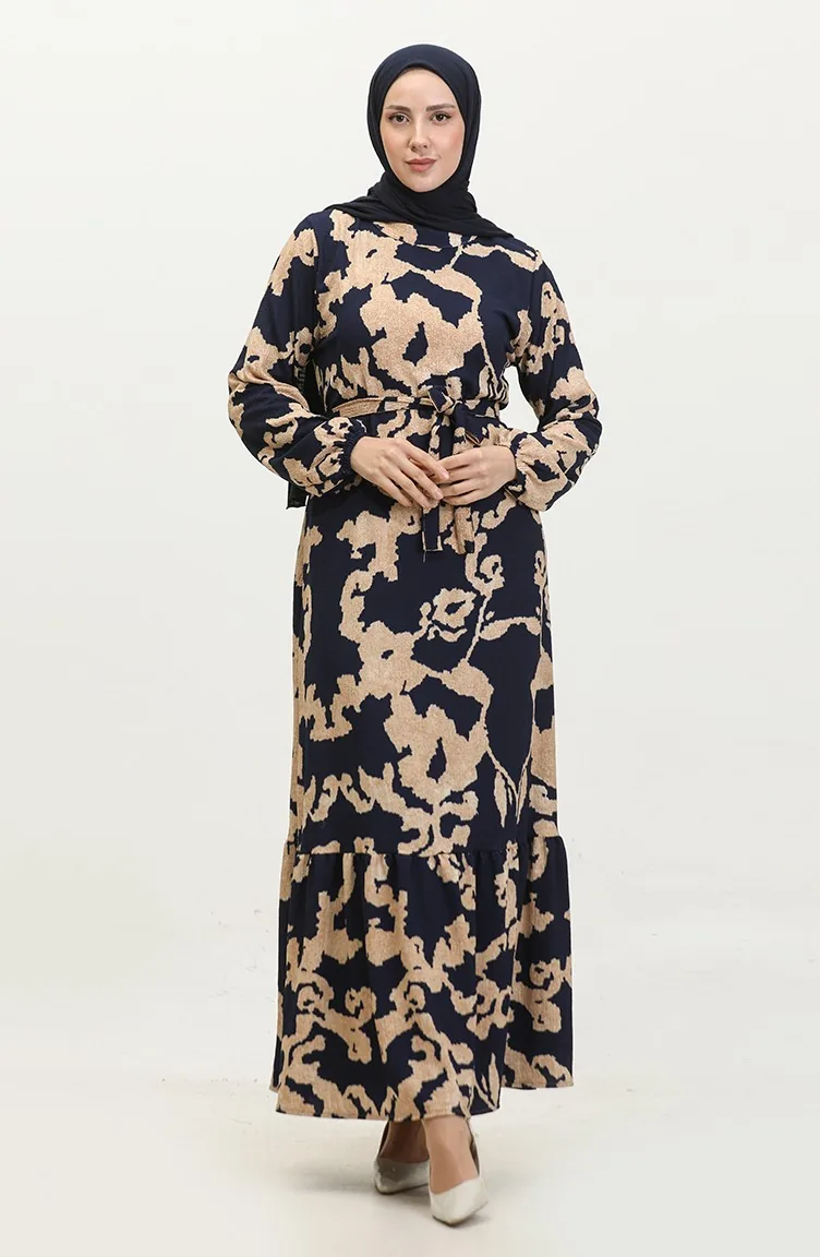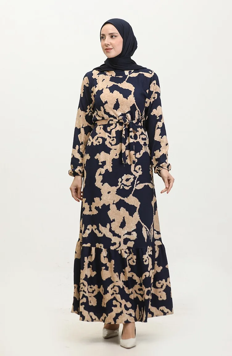 فستان فيسكوز منقوش 0345-02 بيج كحلي 0345-02