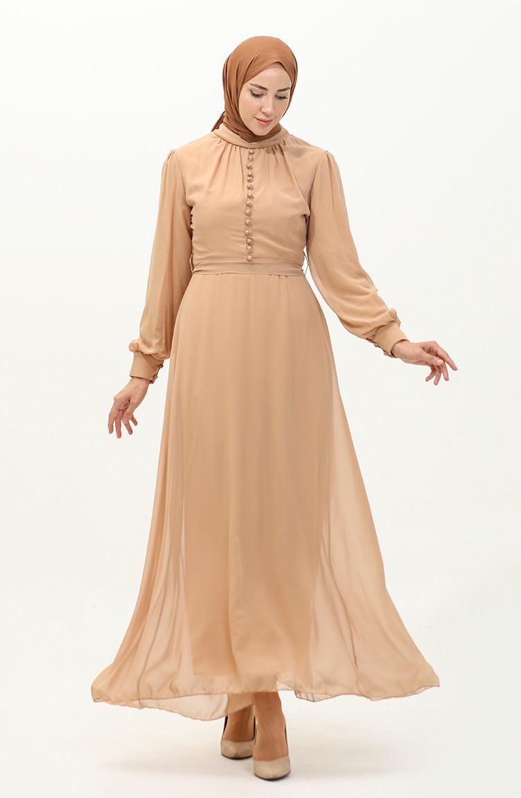 فستان سهرة شيفون بتصميم أزرق 5695A-02 بني فاتح 5695A-02