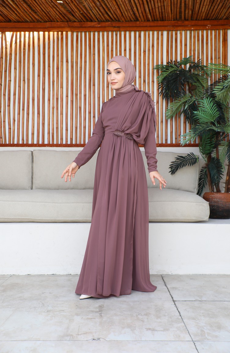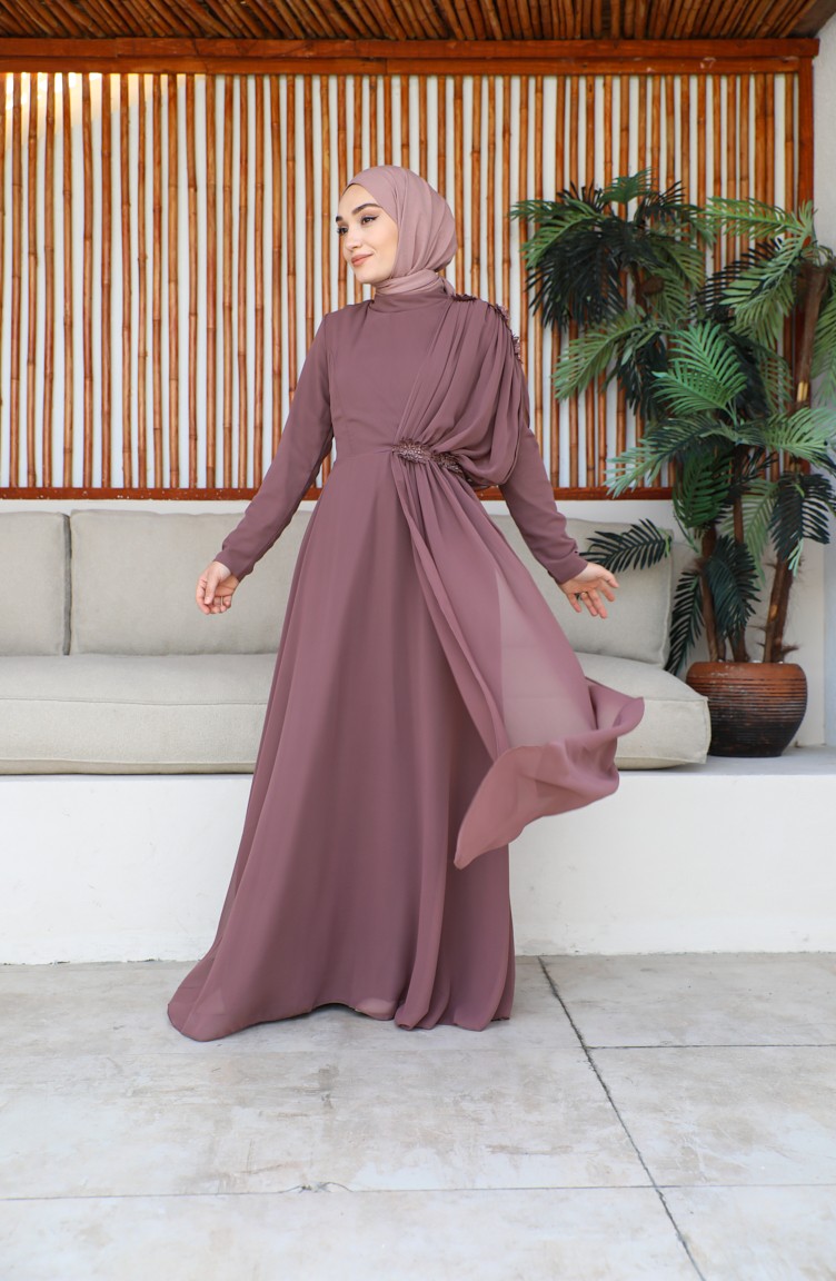 الظلام داستي روز اللون استخدامها. قماش الشيفون نسيج شفاف و خفيف. ذو مظهر سادة. تستخدم في الأقمشة الرقيقة لمنع المخايلة. المنتج طويلة الأكمام. Dik Yaka. مناسب لجميع المواسم. القياس التي في الصورة هي قياس العارضة.