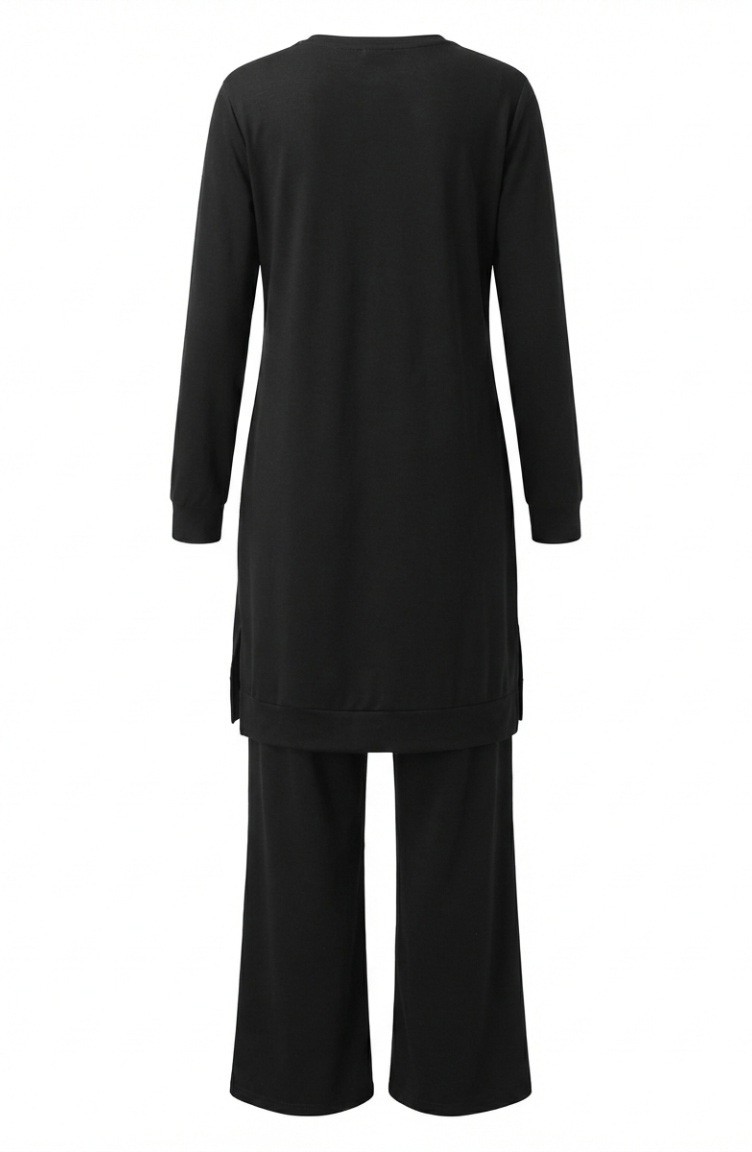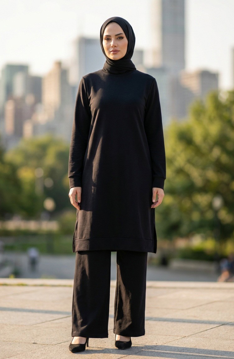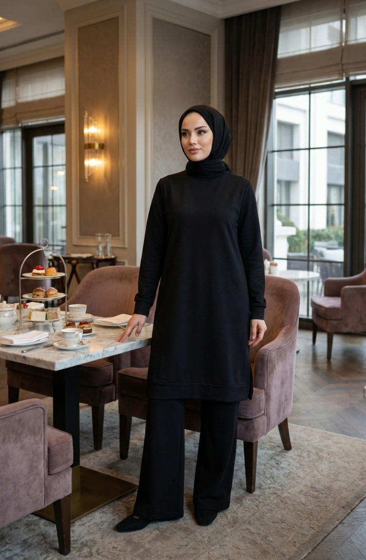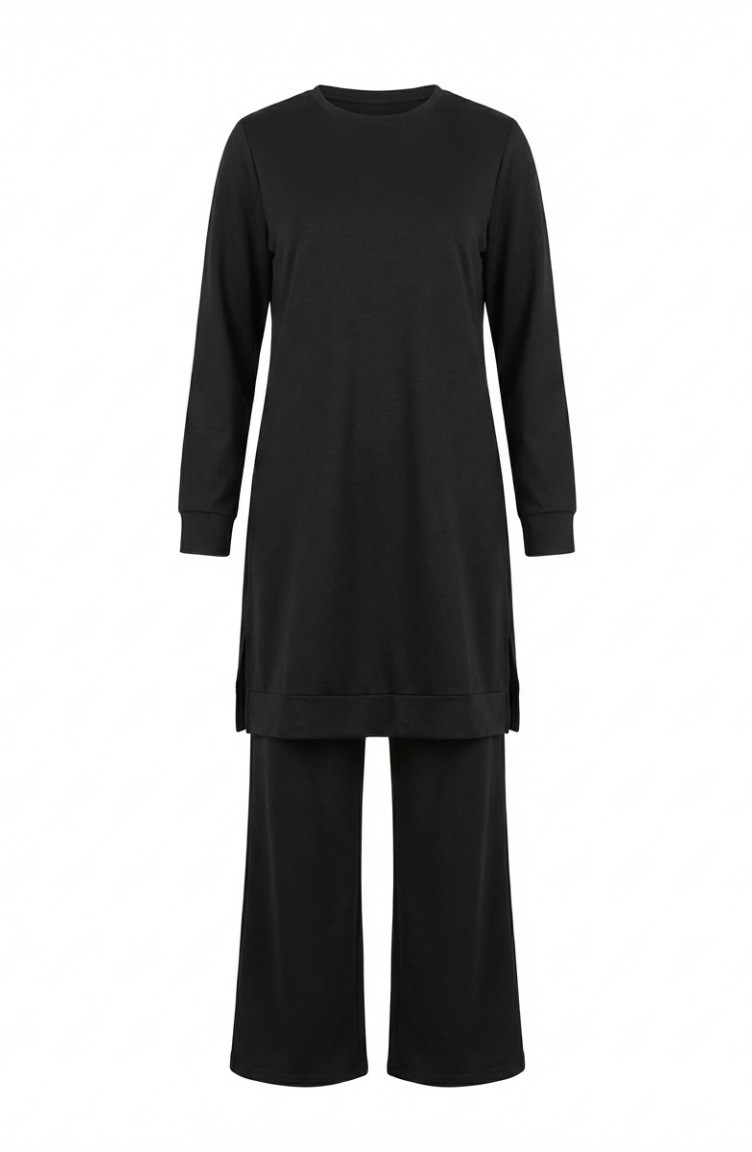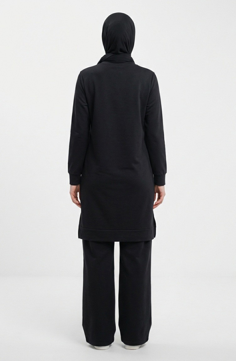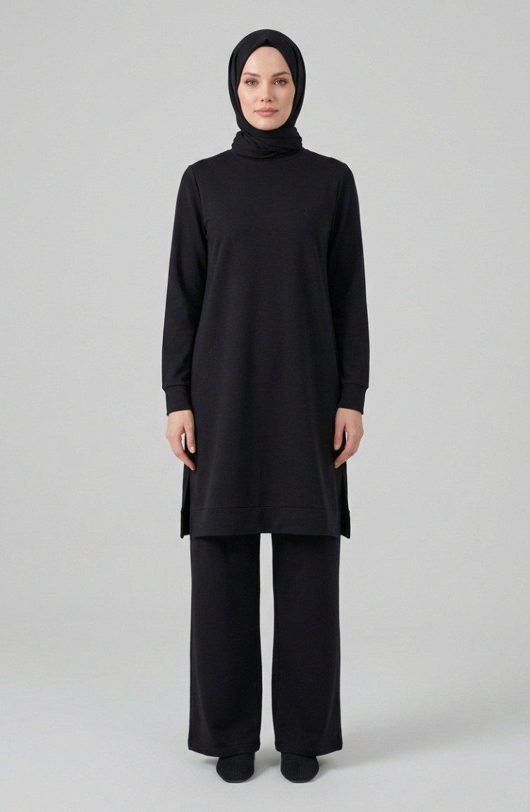 طقم رياضي بفتحة جانبية 3083-04 أسود 3083-04