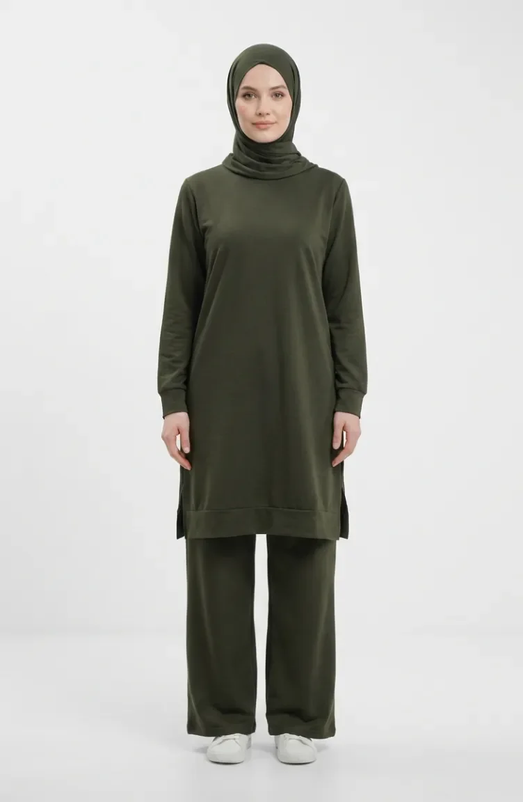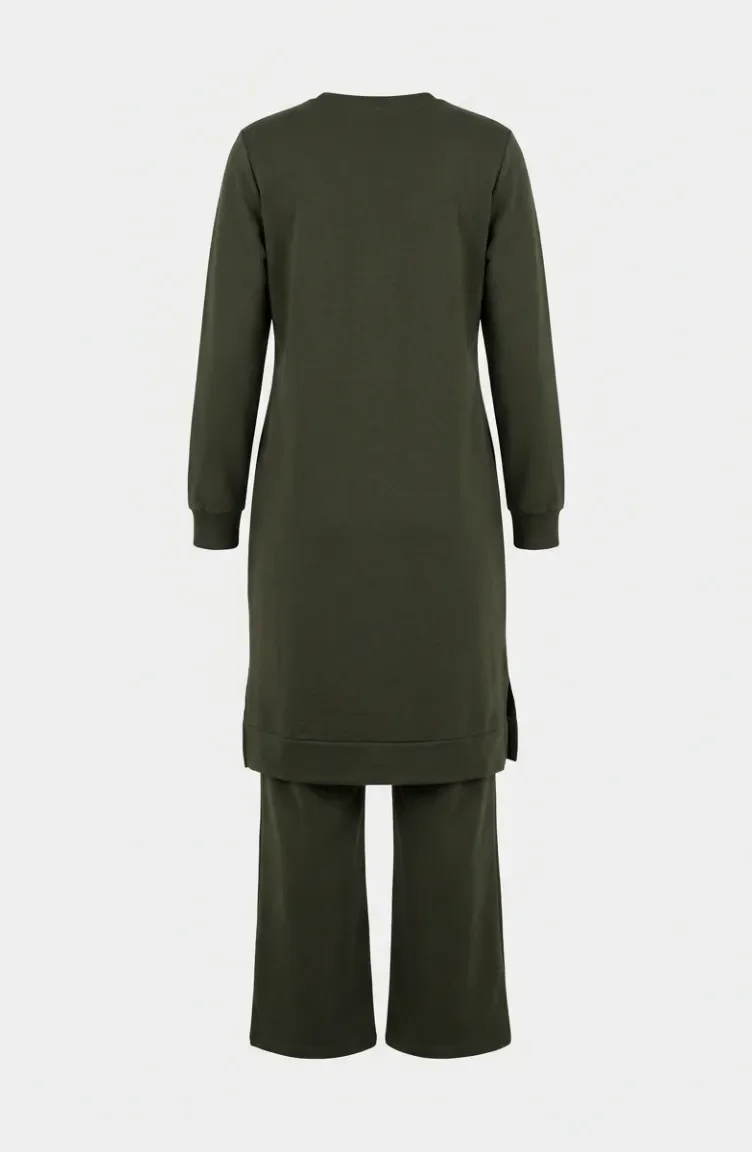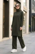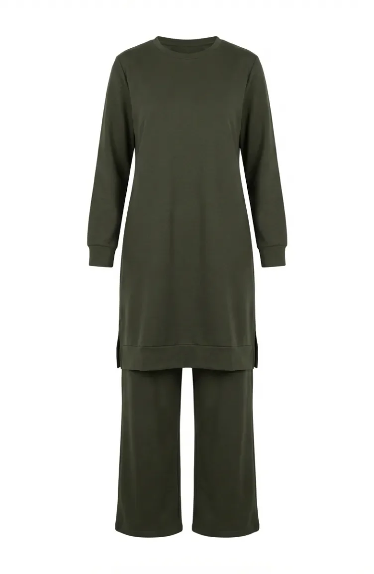 طقم رياضي بفتحة جانبية 3083-20 كاكي داكن 3083-20