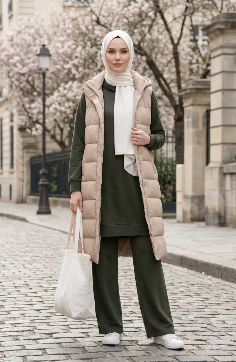 استخدم فيه اللون الحشيشي الغامق. نسيج القطن لديه نسيج ماص. ذو مظهر سادة. التونيك عند لبسه مع قطعة اخرى تعطي تلاؤما جميلا. من الممكن استعمال المنتج بدون ياقة مع كل ملابس. مناسب لجميع المواسم. هناك مقاسات كبيرة.