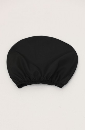 مايوه حجاب بسحاب ونقوش زهرية وخصر مطاطي مع غطاء للرأس 9005D-01 أسود وأبيض 9005D-01