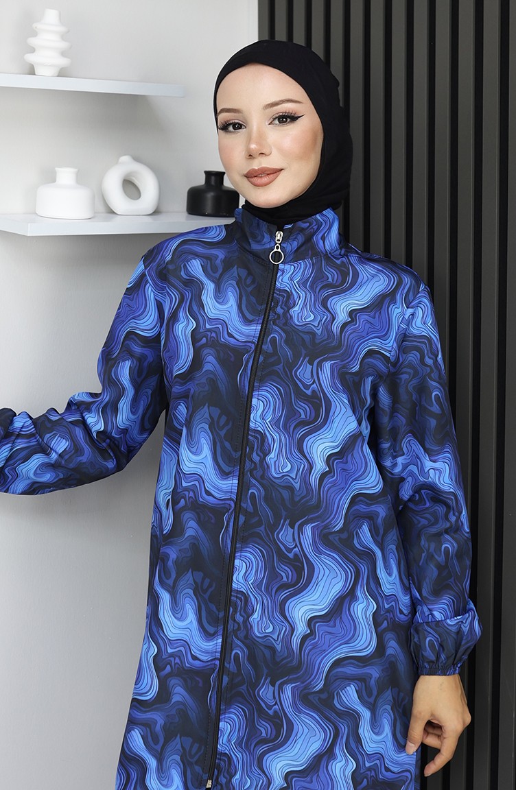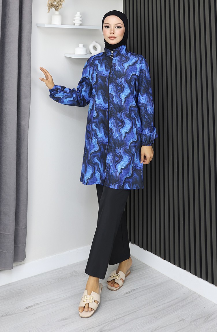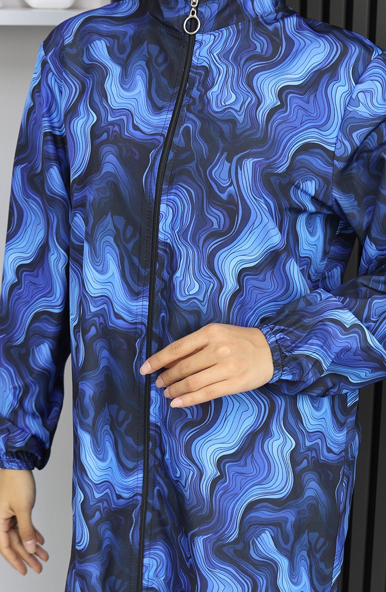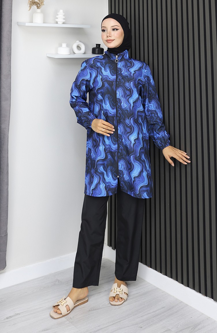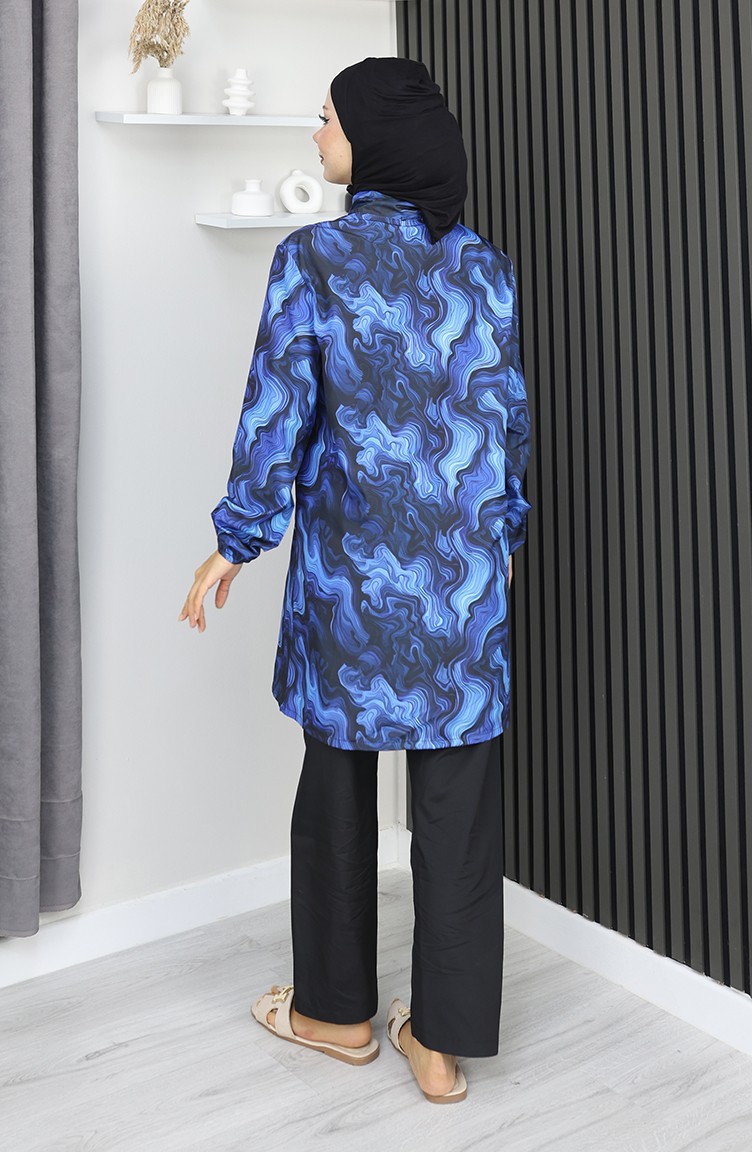 بدلة سباحة محجبات بنقشة المحيط، 3 قطع، أزرق داكن، 1903-10 1903-10