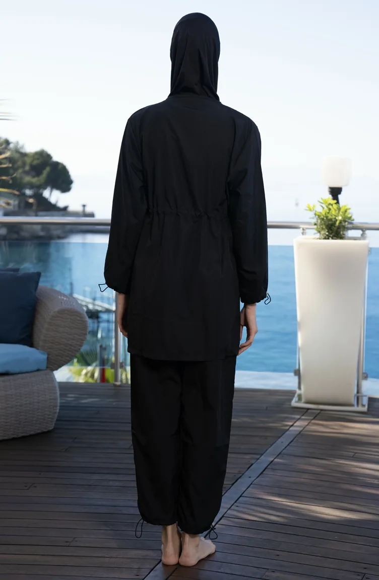 ملابس سباحة للحجاب مغطاة بالكامل بسحاب 22990ES-02 لون أسود 22990ES-02
