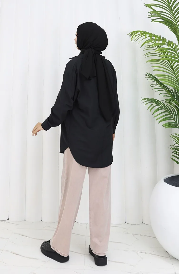 بنطال جينز بتصميم مطاط عند الخصر 9633-03 لون وردي 9633-03