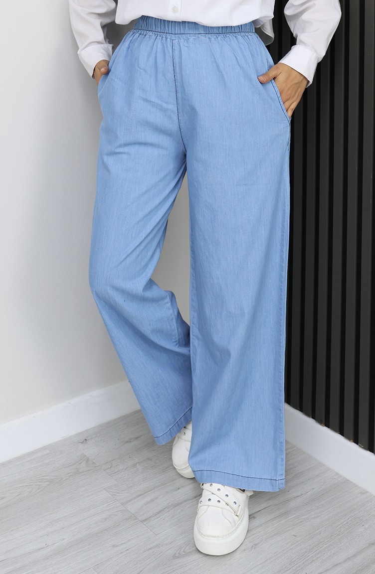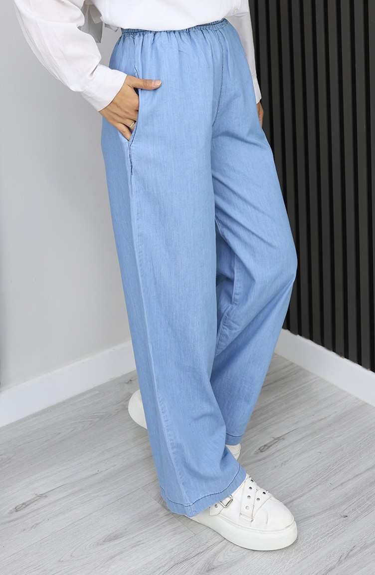 بنطال جينز تينسل بخصر مطاطي 7568-05 أزرق داكن 7568-05