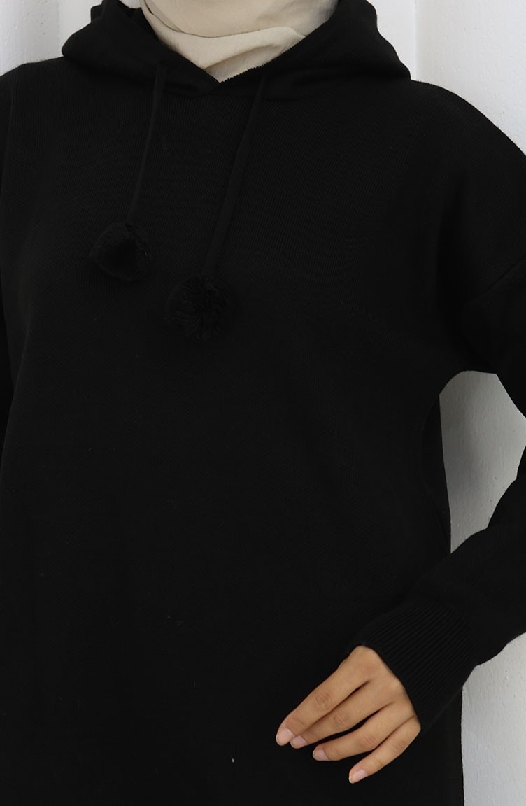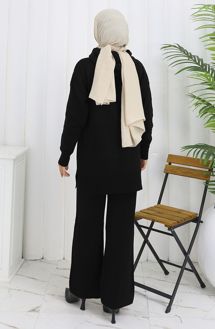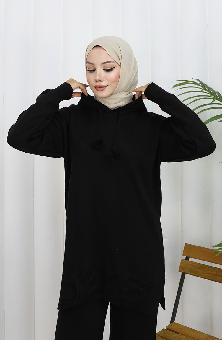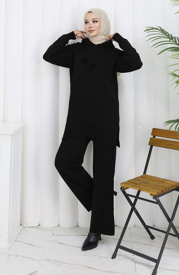 بدلة محبوكة من قطعتين، سترة بقلنسوة وبنطلون، لون أسود، 1079-06 1079-06