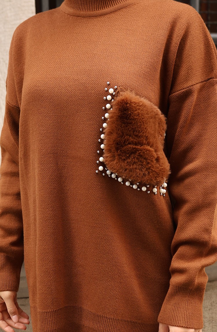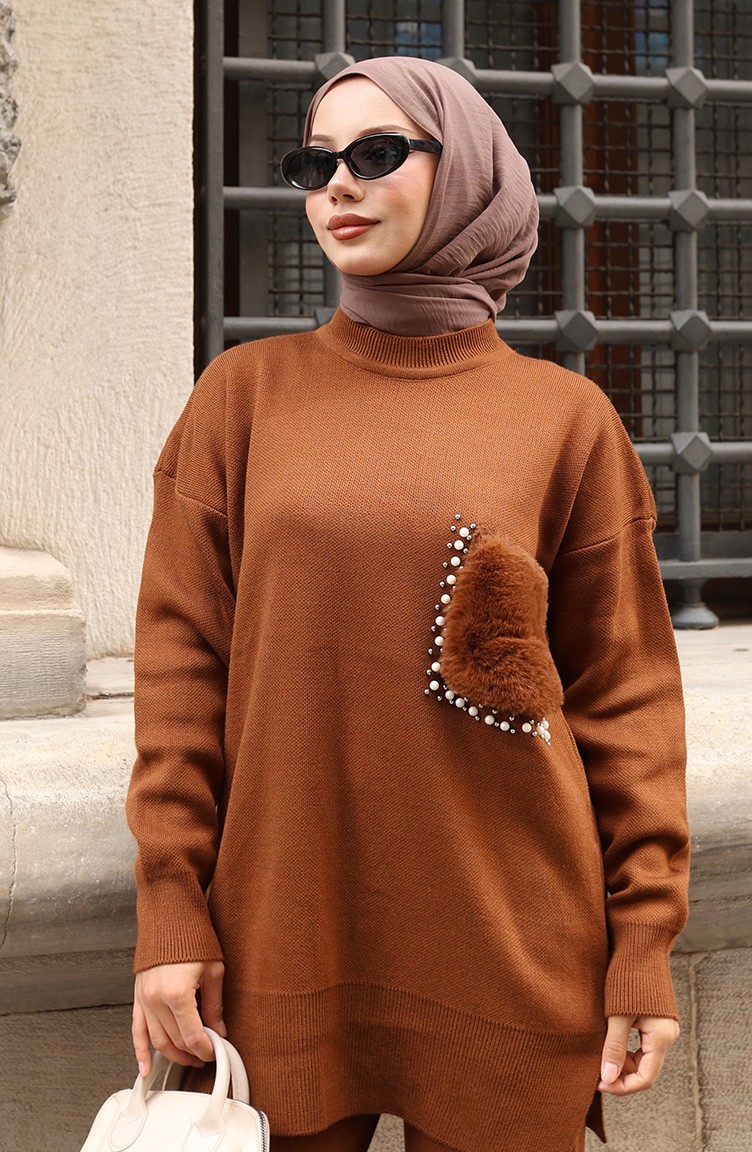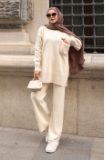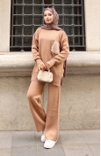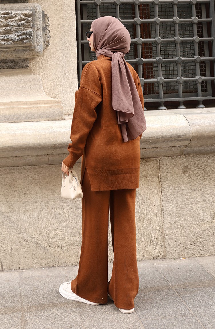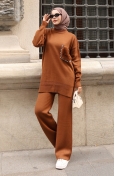 بدلة من قطعتين، بنطال تونك بتفاصيل جيوب، لون بني، 1093-04 1093-04