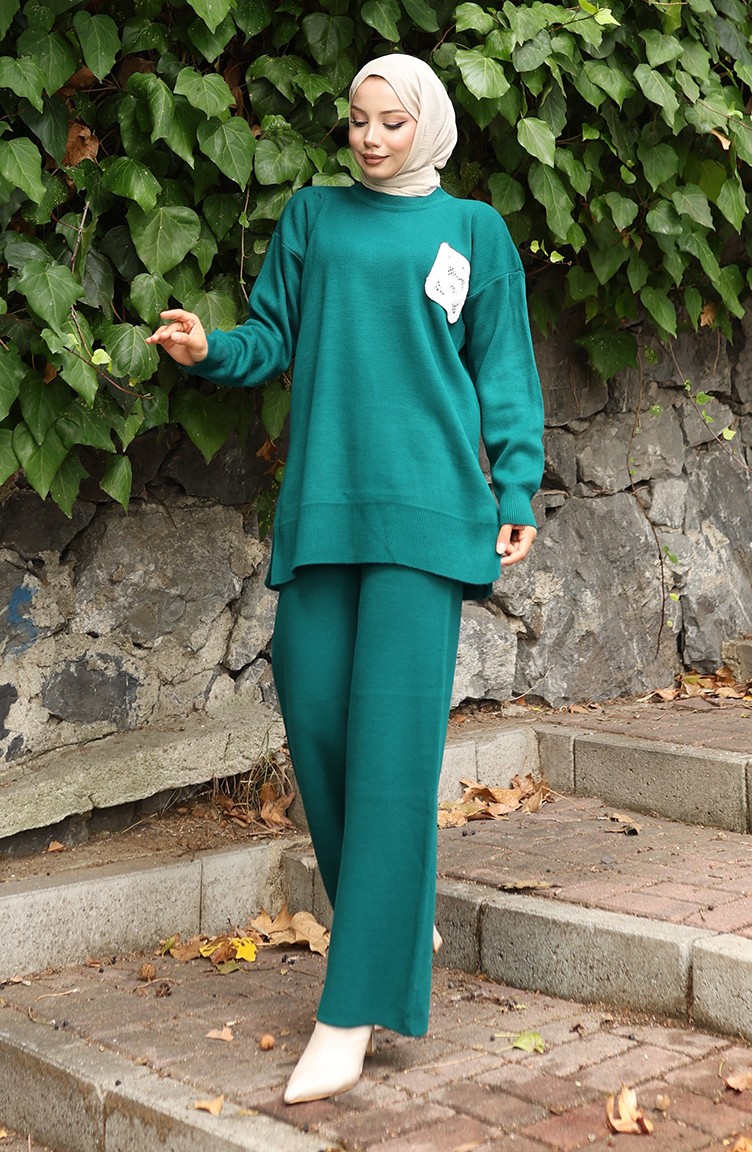 طقم تونيك وبنطلون محبوك من قطعتين 1029-01 بترولي 1029-01
