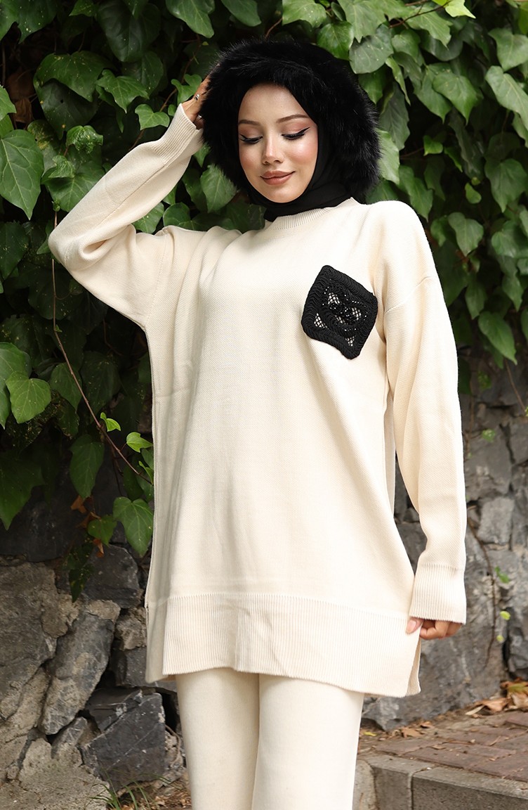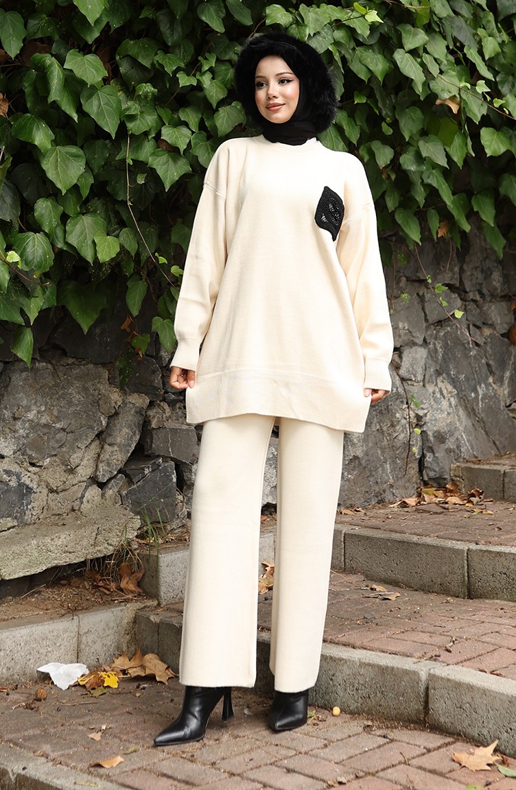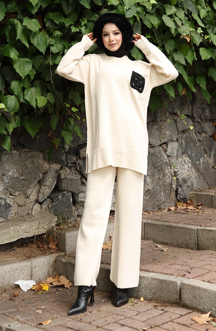 بدلة محبوكة من قطعتين، بنطلون، تونيك، 1029-05 بيج 1029-05
